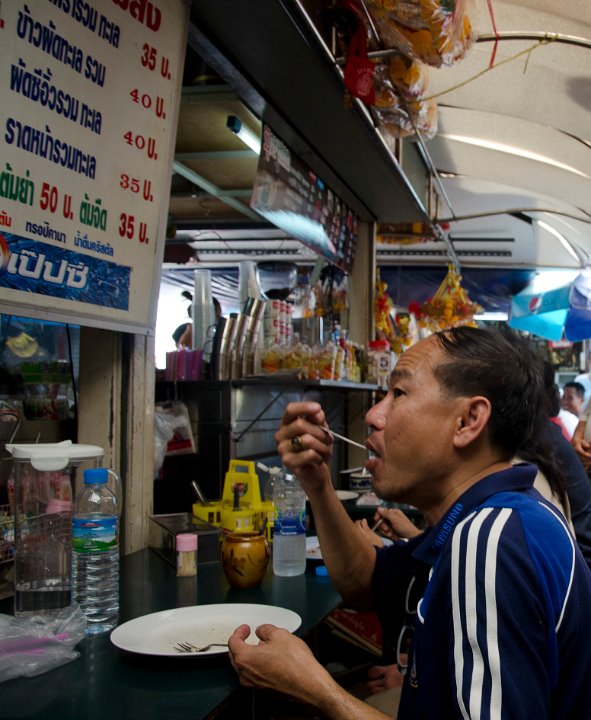 DSC 0873  Homme se restaurant dans la rue DSC 0886  Une petite fille au marché aux amulette de War Rachanadda DSC 0937  Des danseuses traditionnelles Thai se produisant sur le parvis d'un temple DSC 0940  Un homme se restaurant (à 10h du matin !)