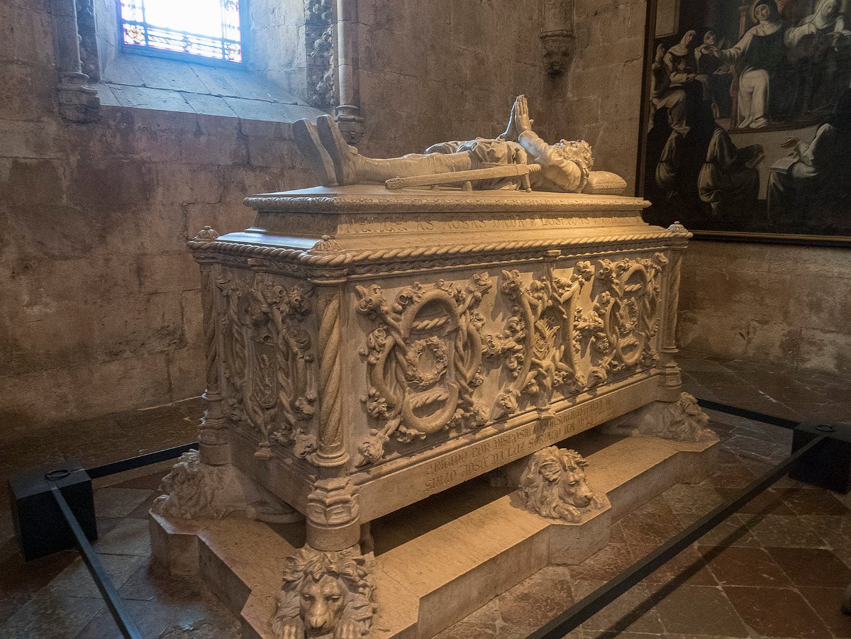 La nef principale et le coeur Les colonnes qui supportent les voutes Tombeau de Luis Vaz De Camoès (poète portugais) dans une chapelle Tombeau de Camoès