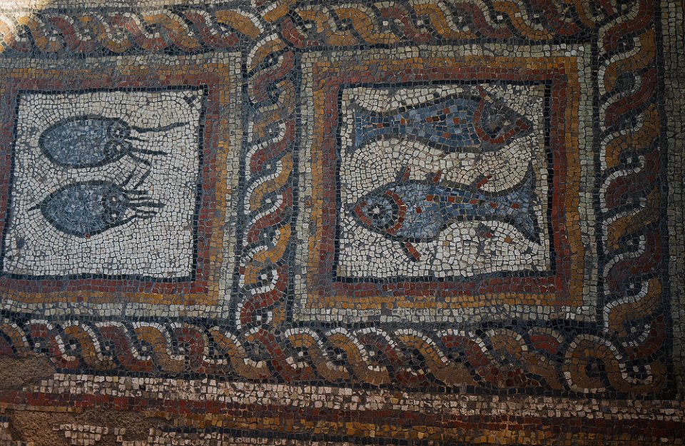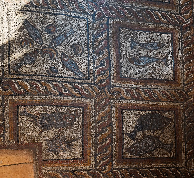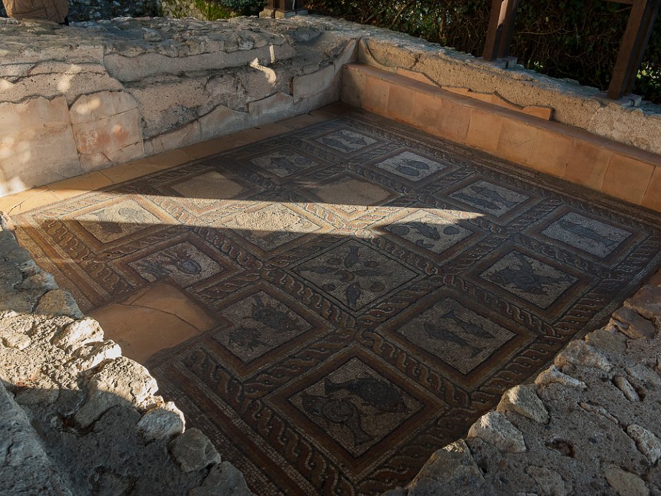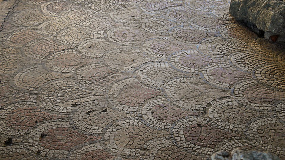 Mosaïque de la galerie sud qui menait aux thermes privés