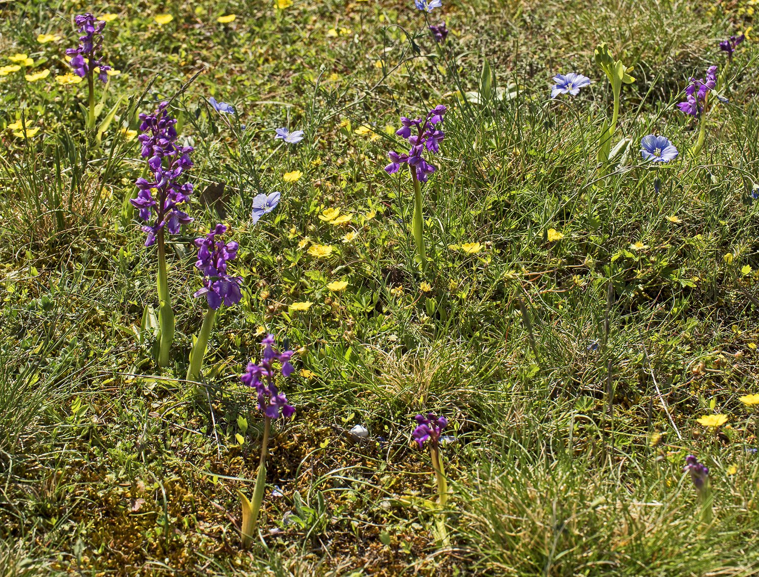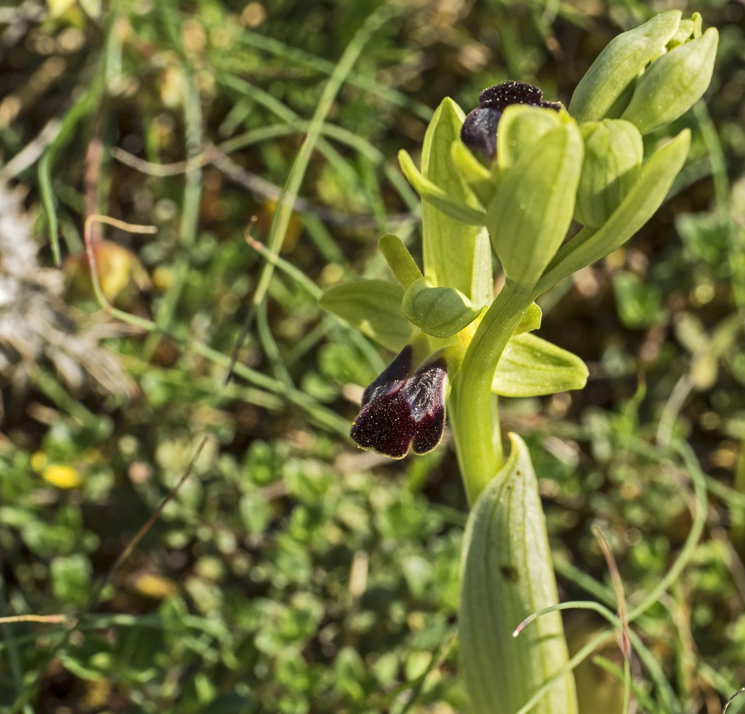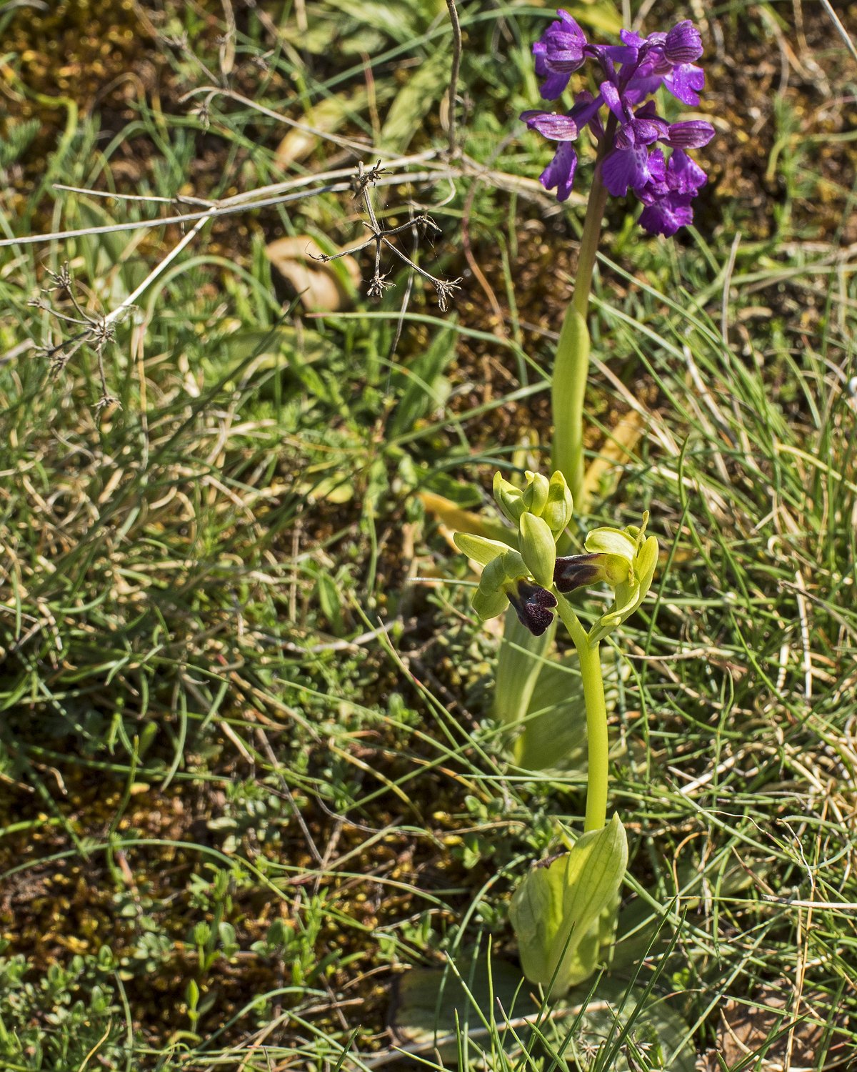 Orchis bouffon, fumana couché et fleur de lin Orchis bouffon et Ophrys sillonnée (Ophrys sulcata) Ophrys sillonnée Groupe d'orchis bouffon