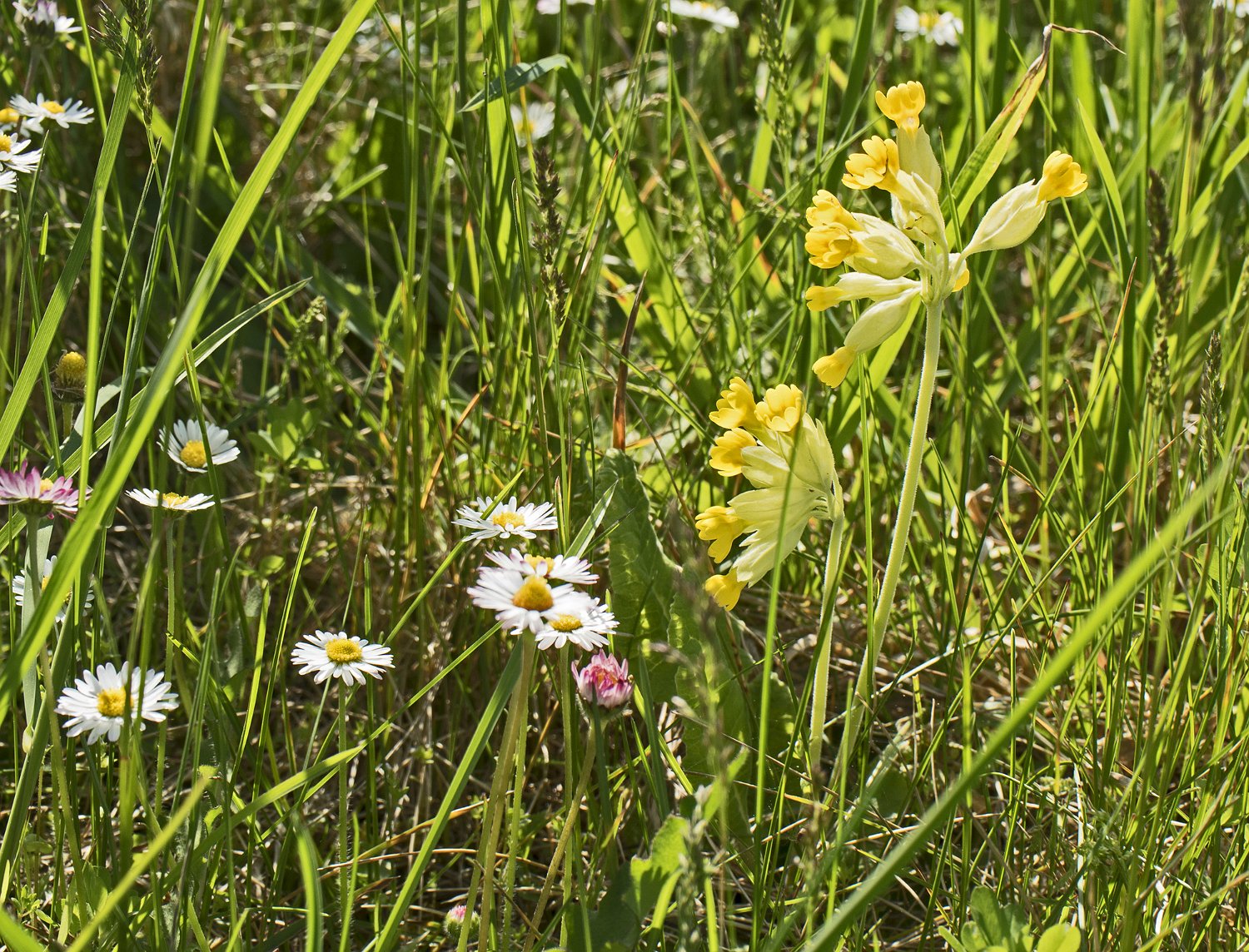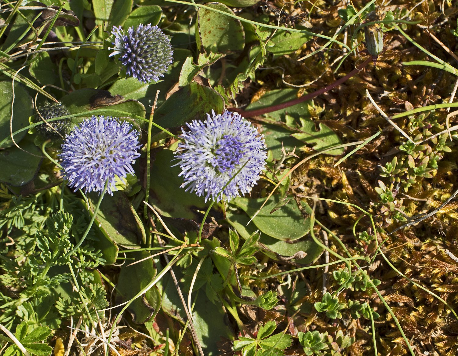 Jasione des montagnes (Jasione montana)  Contrairement à ce qu'indique son nom, ce n'est pas une plante spécifiquement montagnarde. Elle pousse dans les endroits rocailleux Arbuste non identifié  Arbuste d'environ 1m de haut Lichen  Assez répandus par  plaques sur le causse Primevère officinale (Primula veris)  Ne se trouve qu'en bordure du plateau, dans les sols plus riches