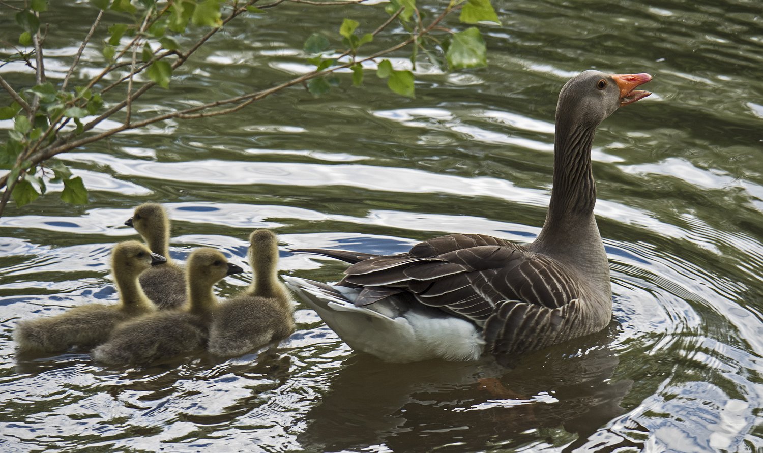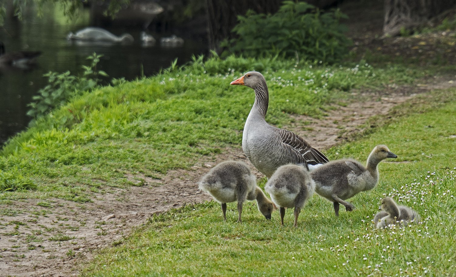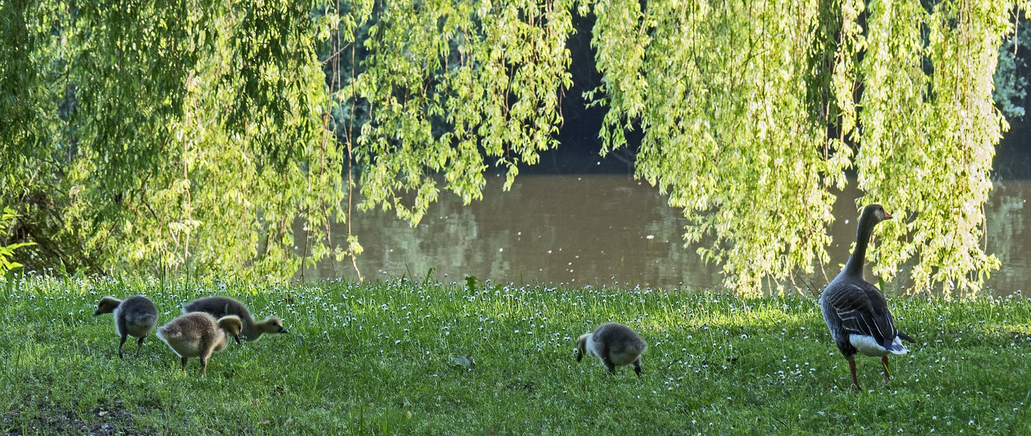 L'oie cendrée à 4 oisons de père inconnu (10/05/18)