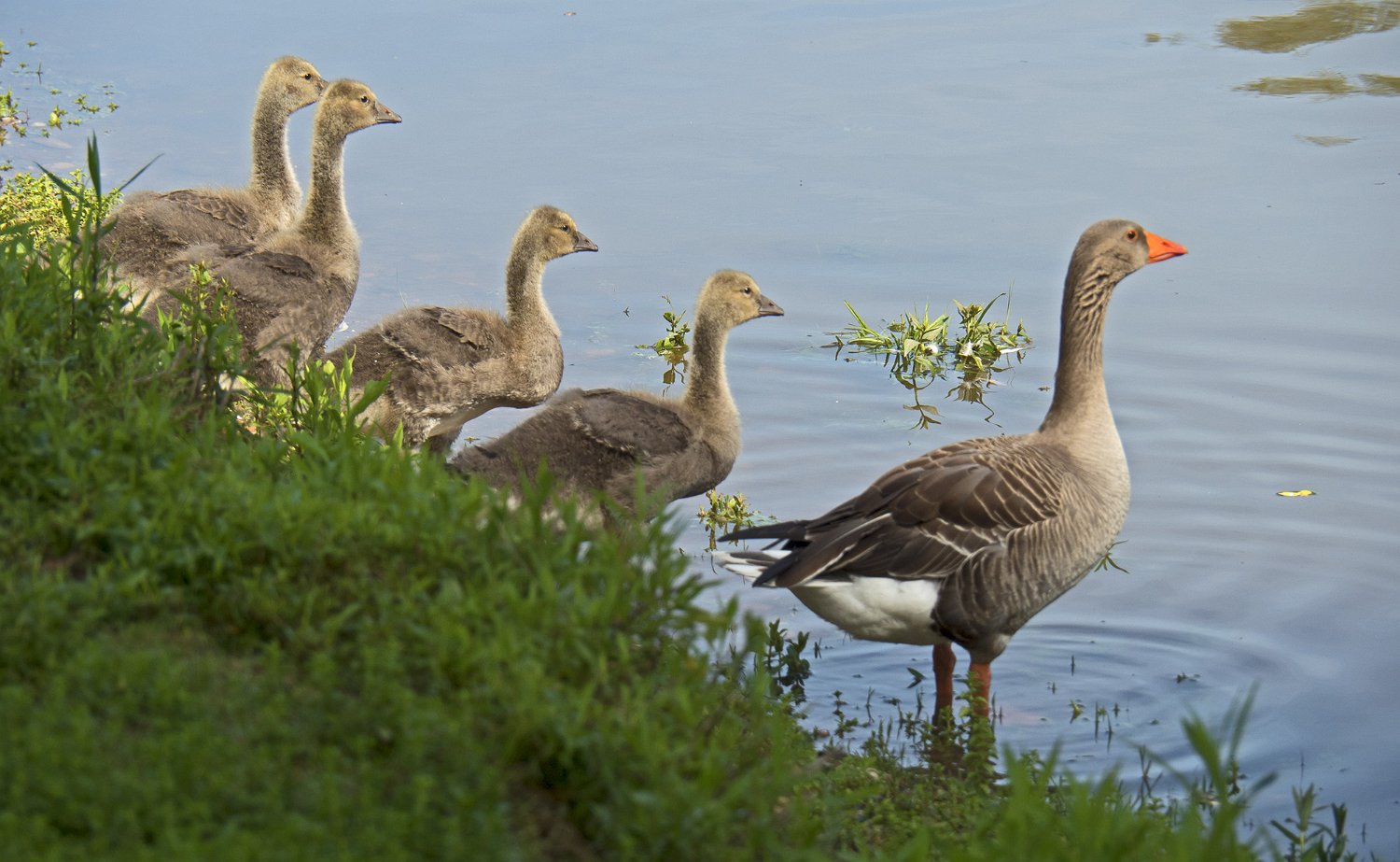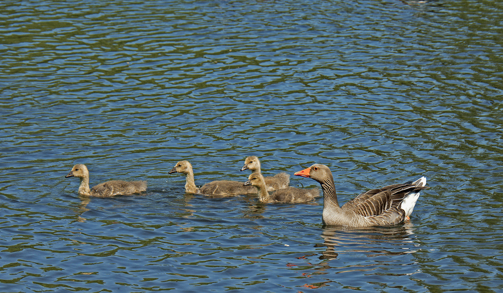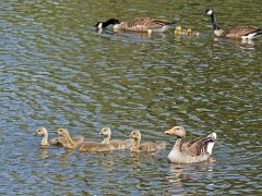 Oie cendrée avec toujours ses 4 oisons (21/05/18)