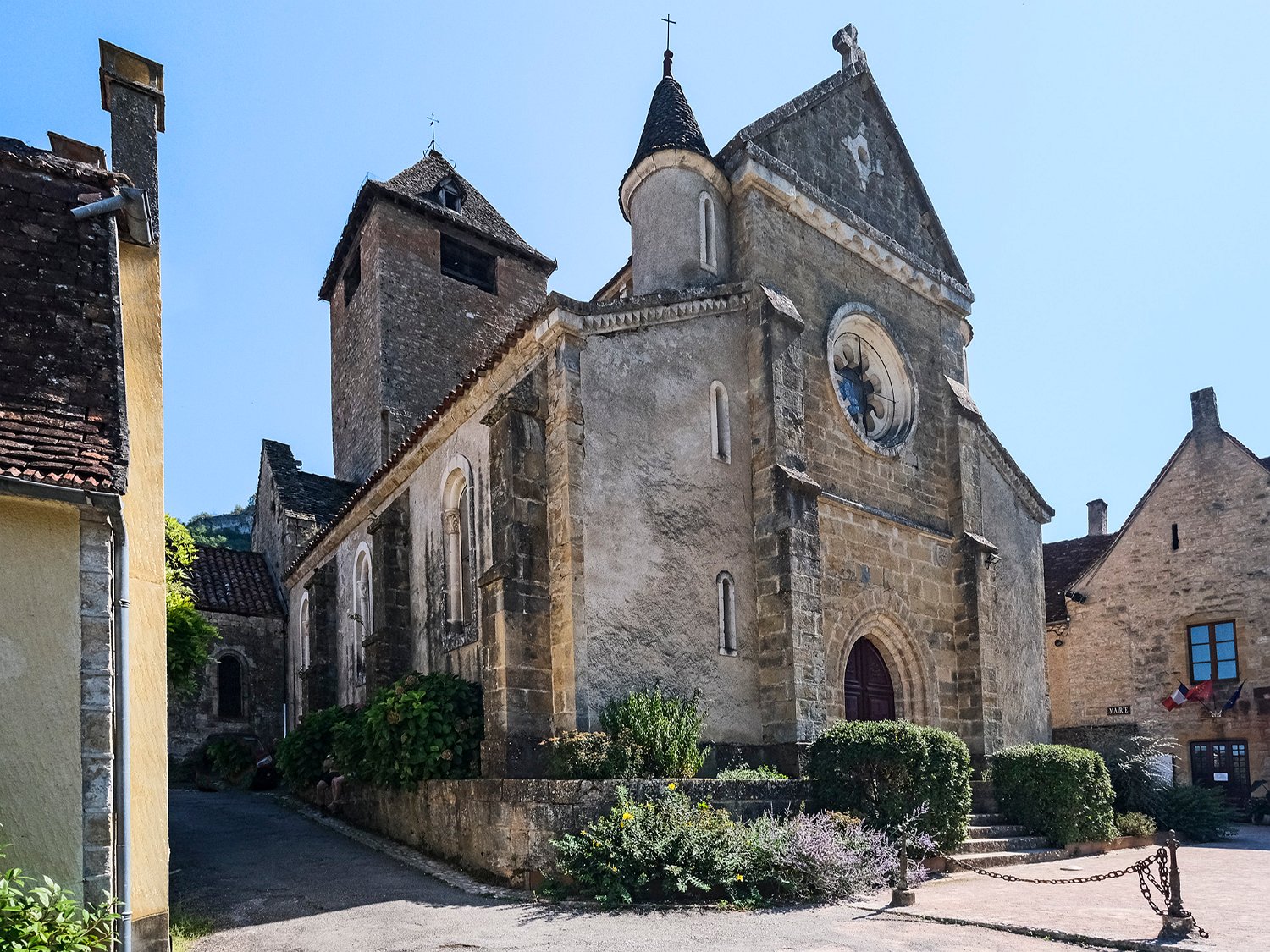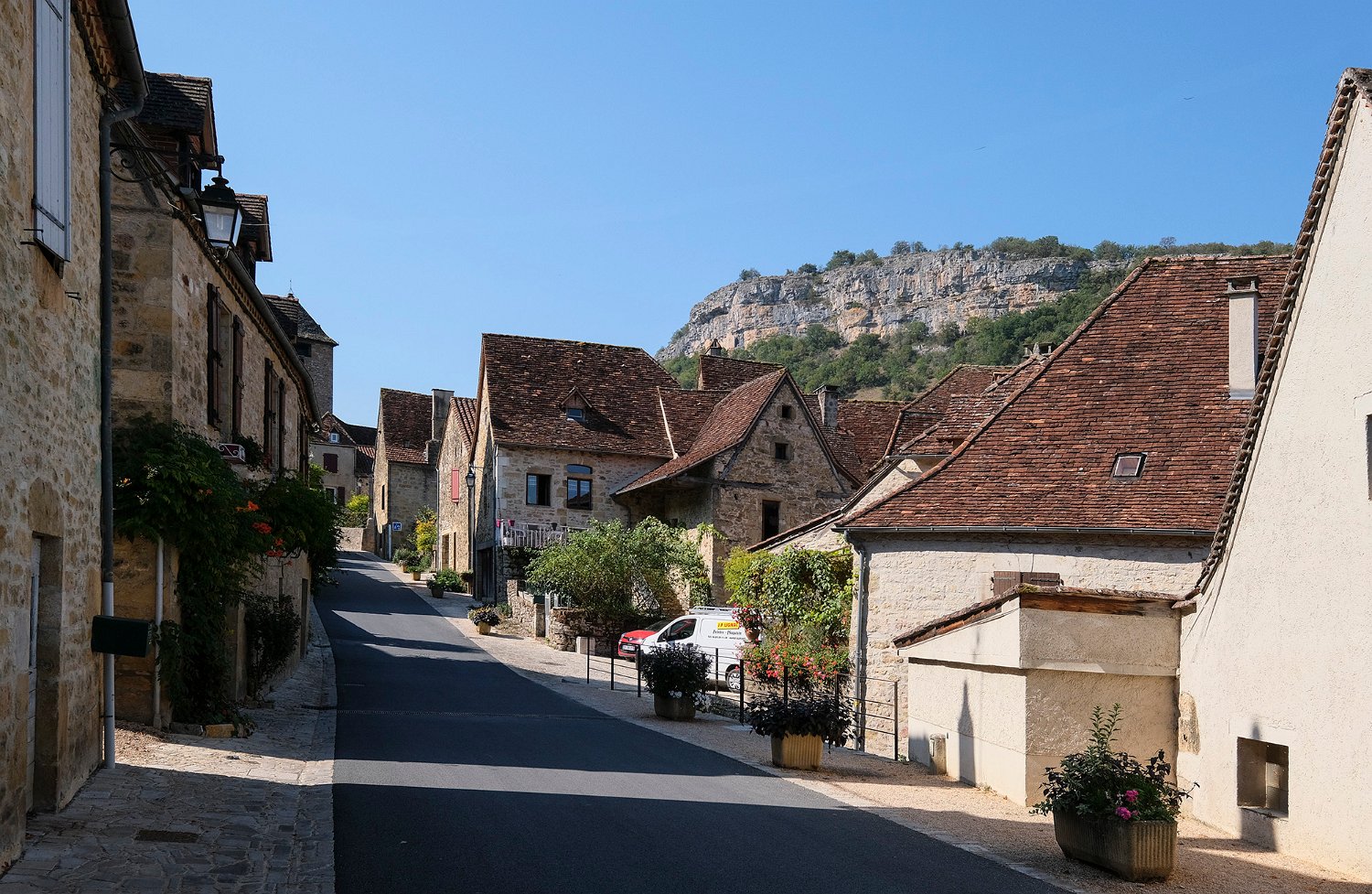 Rue du village, église et falaise