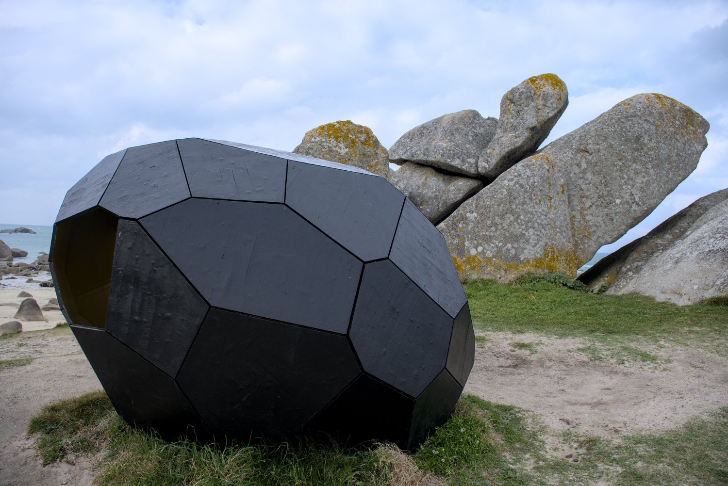 Brignogan- «l'oeuf de dragon» de Pontusval  Cette oeuvre des architectes «Les nouveaux voisins» s'inspire d'une légende selon laquelle deux chevaliers secoururent le seigneur Elorn d'un dragon affamé qu'ils vinrent jeter dans la mer sur ce site