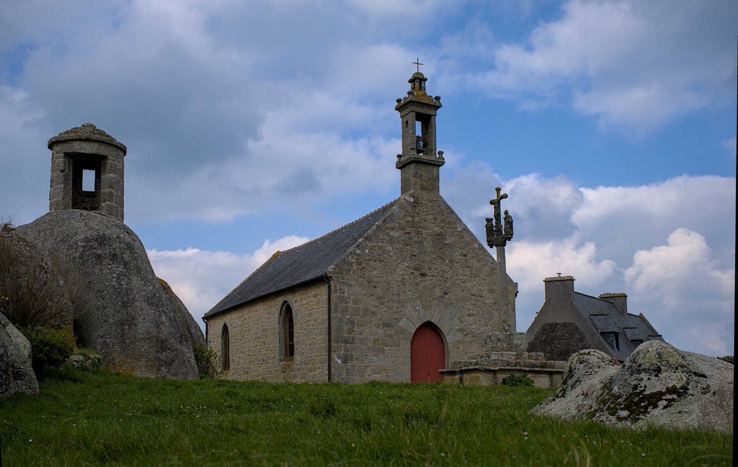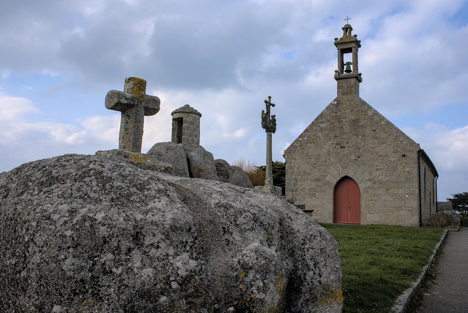 Brignogan- La chapelle Pol  Rebâtie en 1870, cette chapelle est construite sur le site d'une ancienne chapelle du XVIè siècle dont subsiste le calvaire. A côté a été construite une guérite pour les douaniers