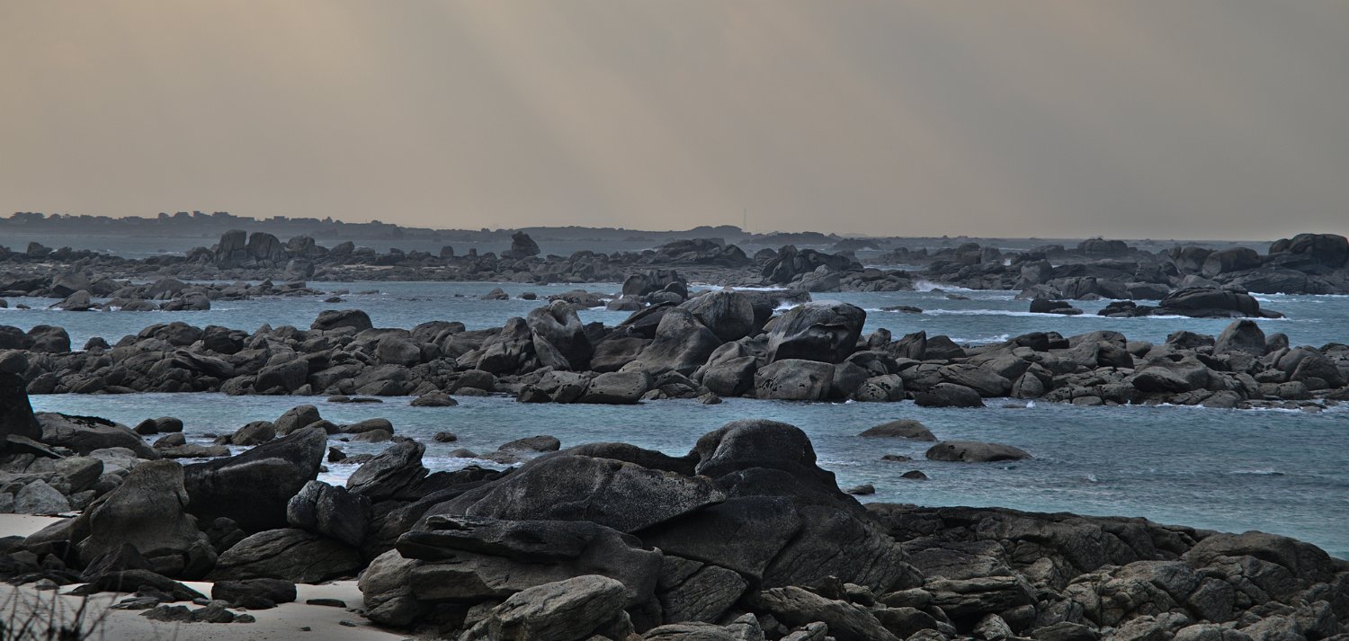 Plouguerneau- La côte, au loin le phare de l'île Vierge