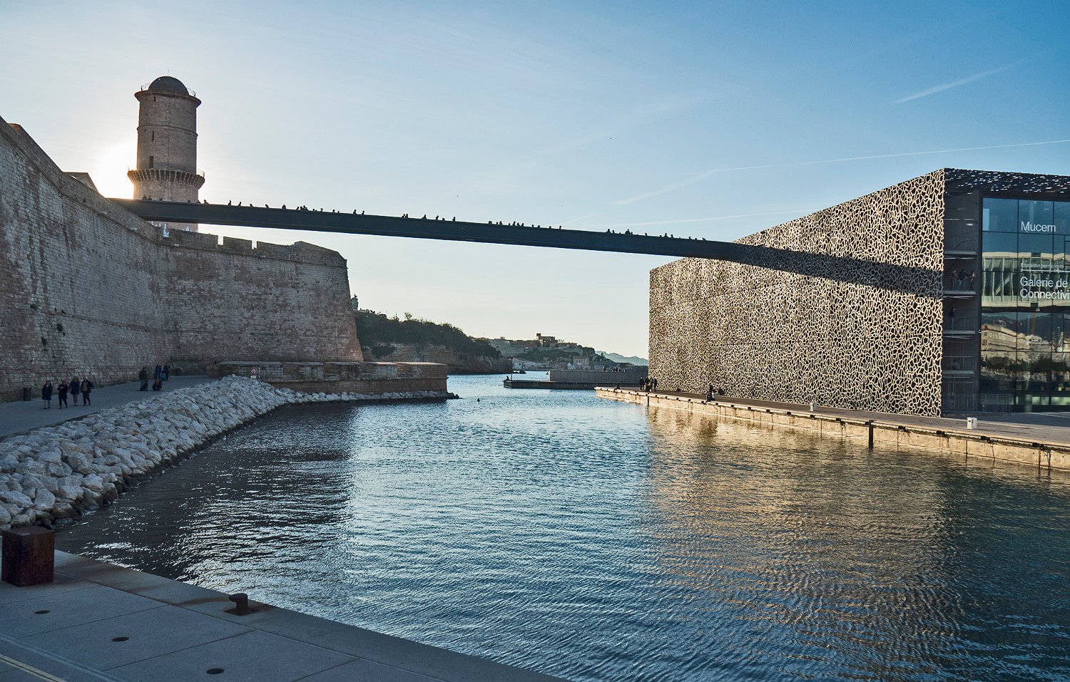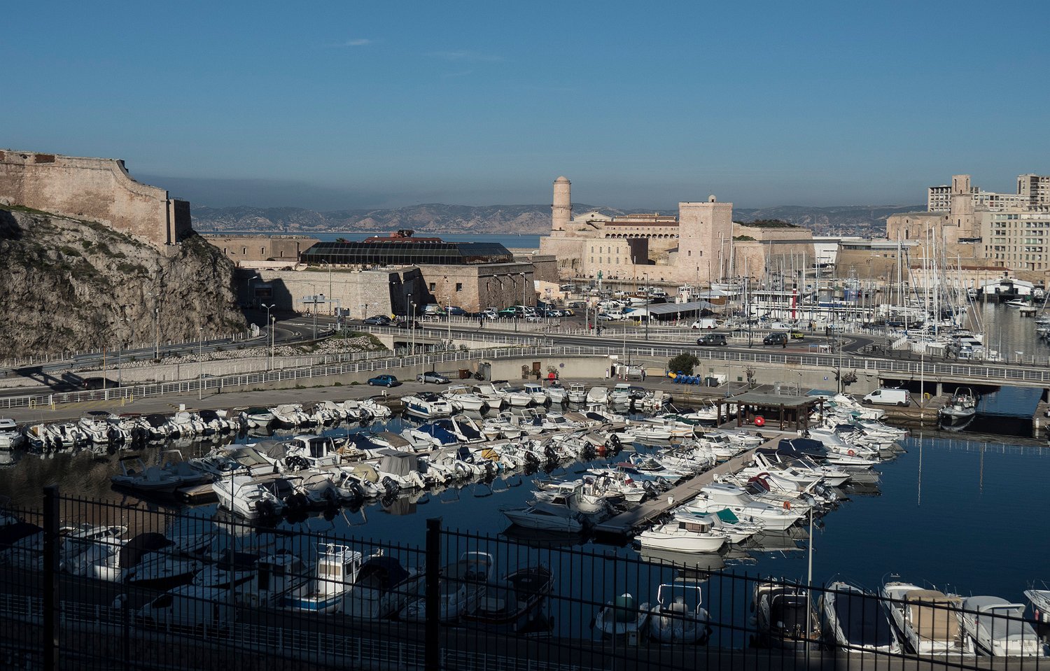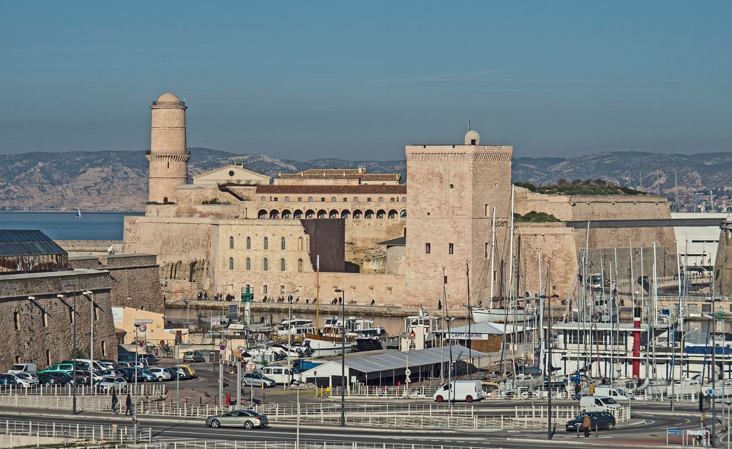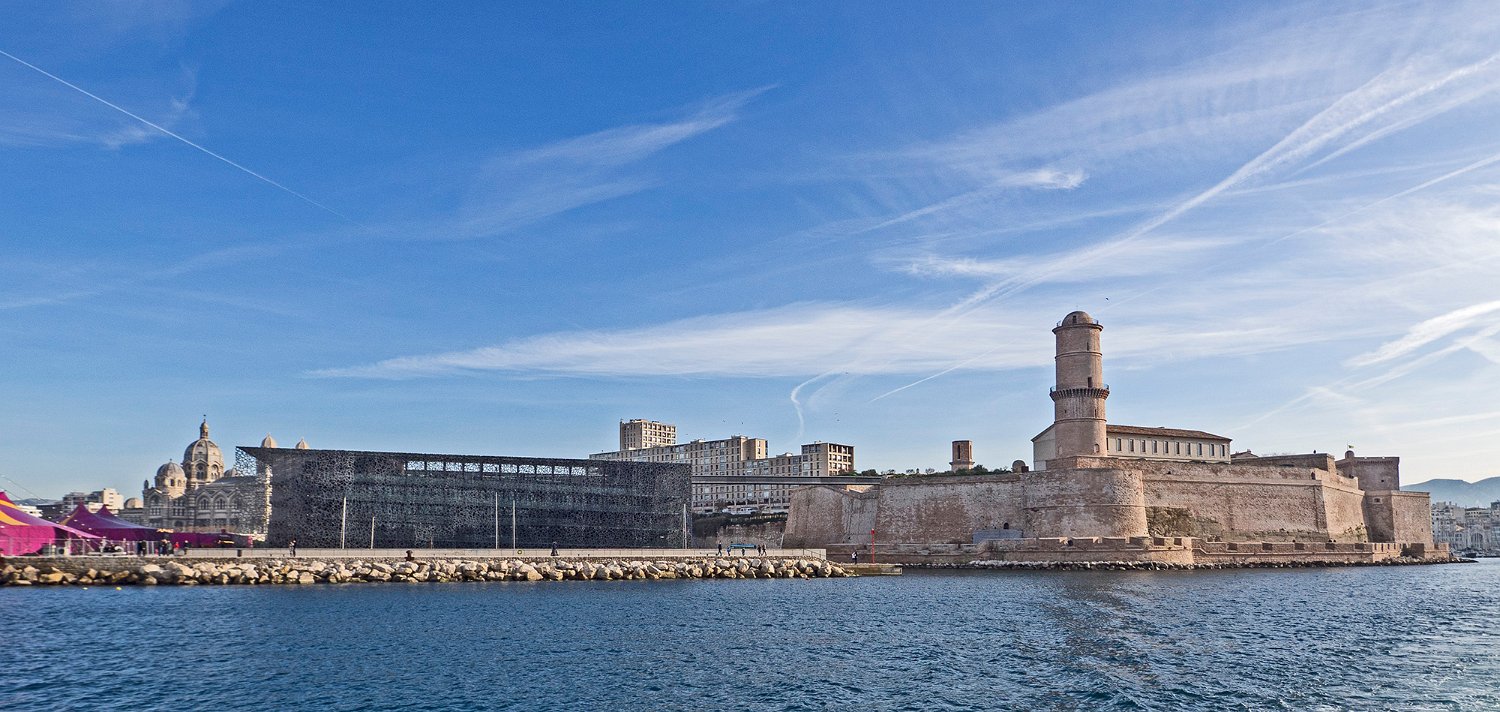 Le forts Saint Jean vue du côté port et la passerelle du Mucem