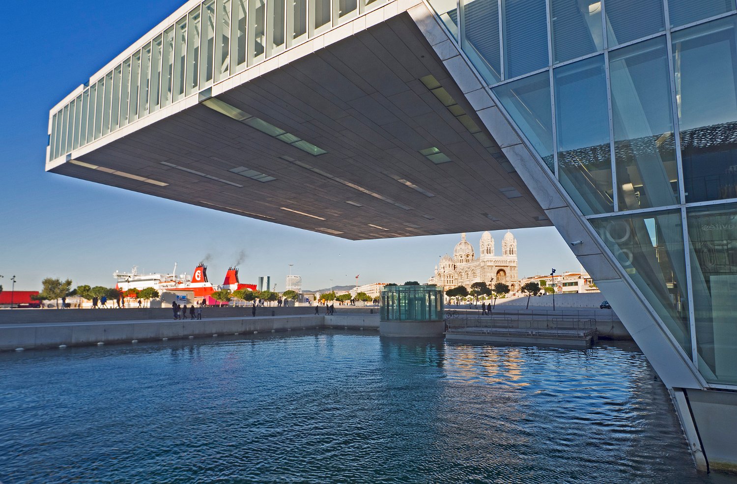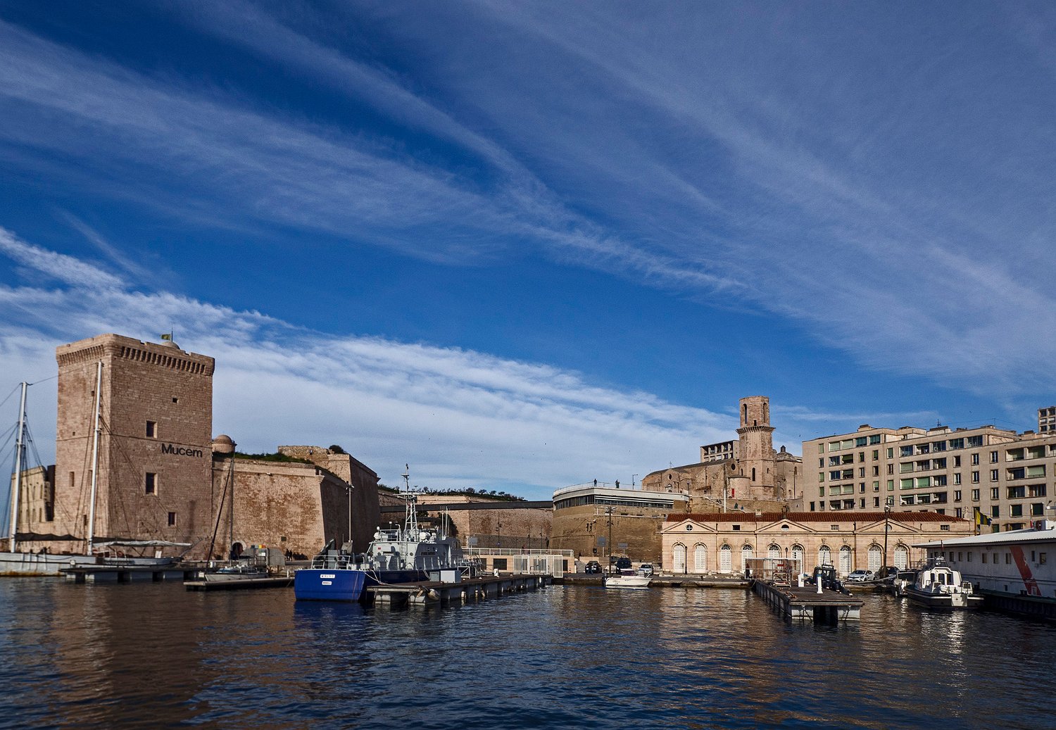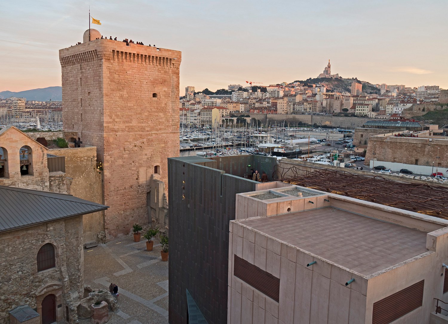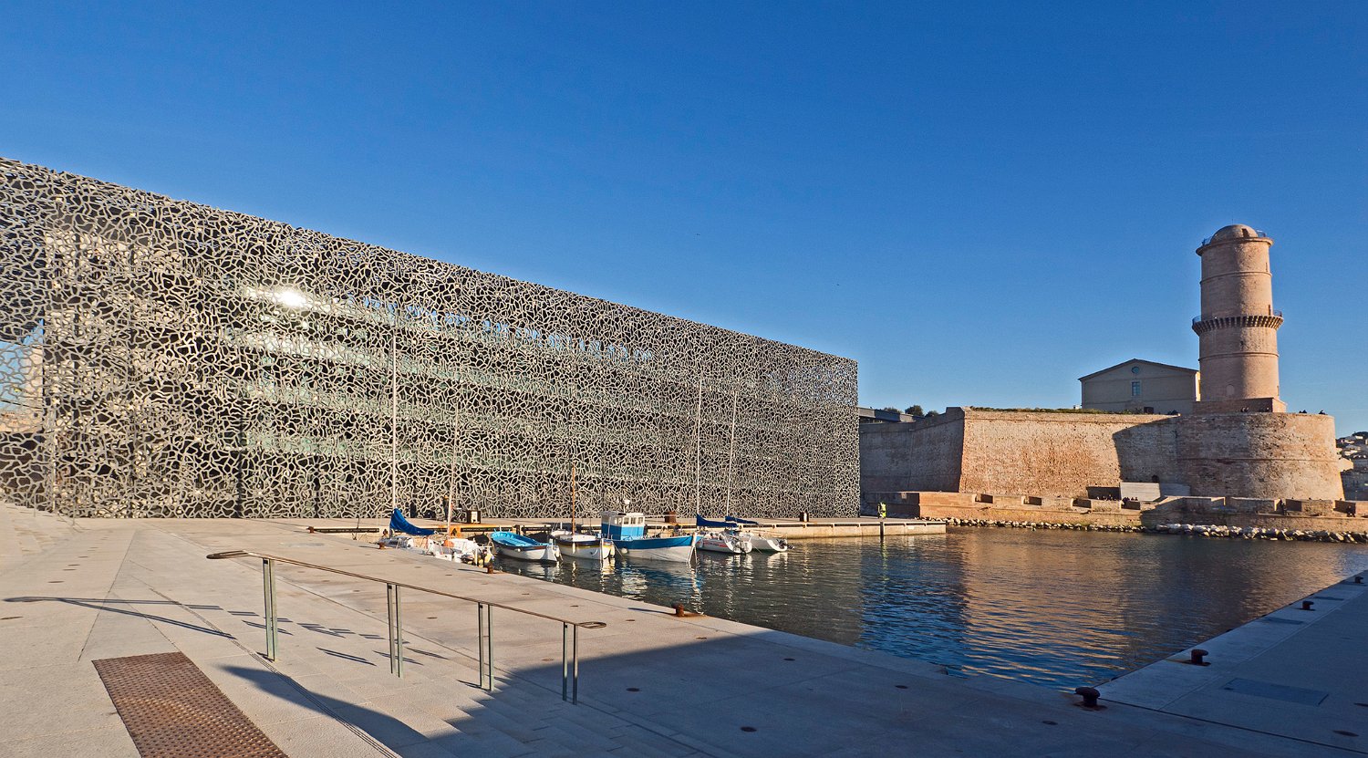 Le forts Saint Jean vue du côté port et la passerelle du Mucem