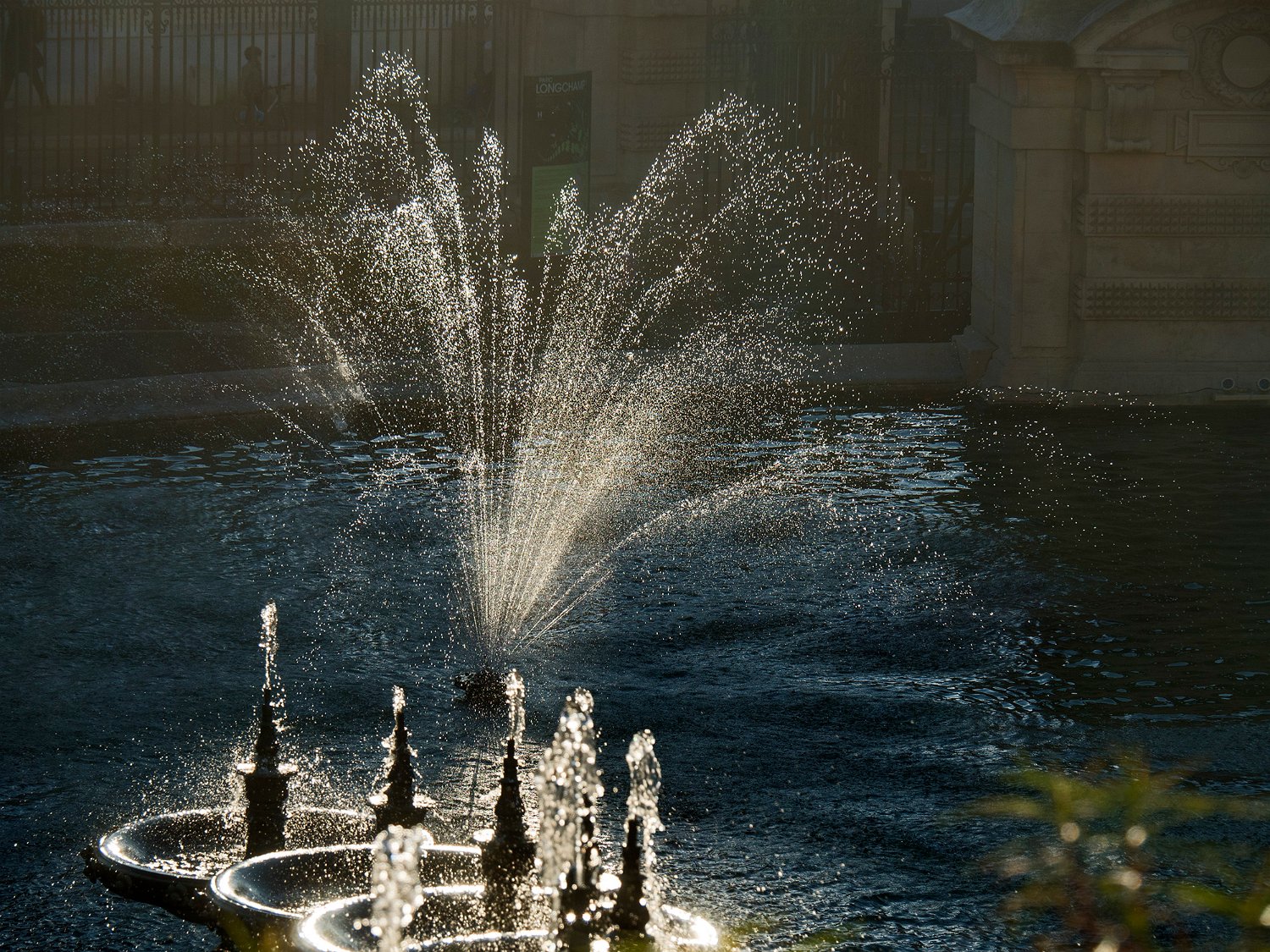 Palais Longchamp - effet de lumière dans le bassin inférieur