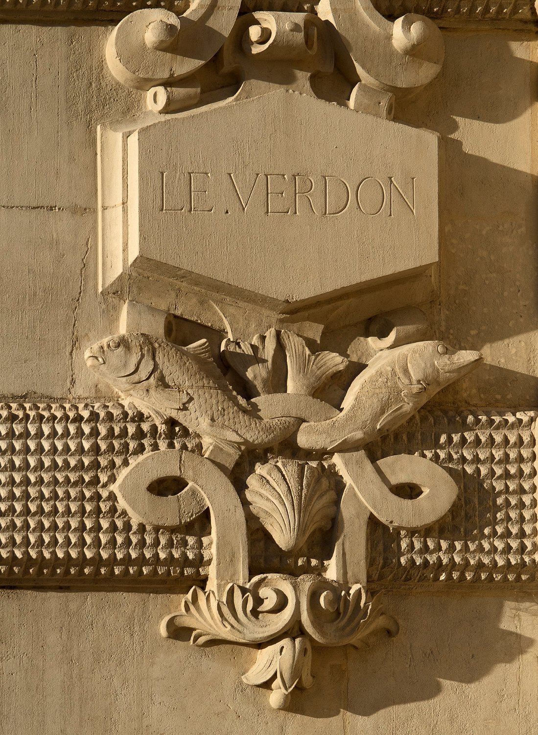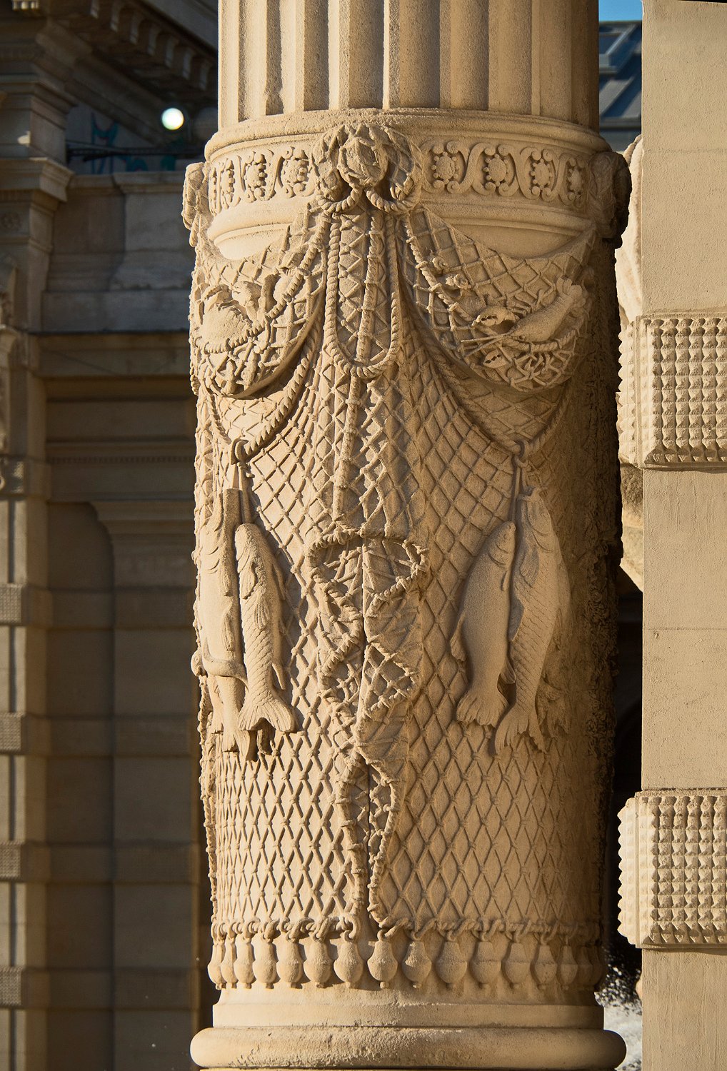 Palais Longchamp - scènes de pêche sur une colonne de l'arc de triomphe