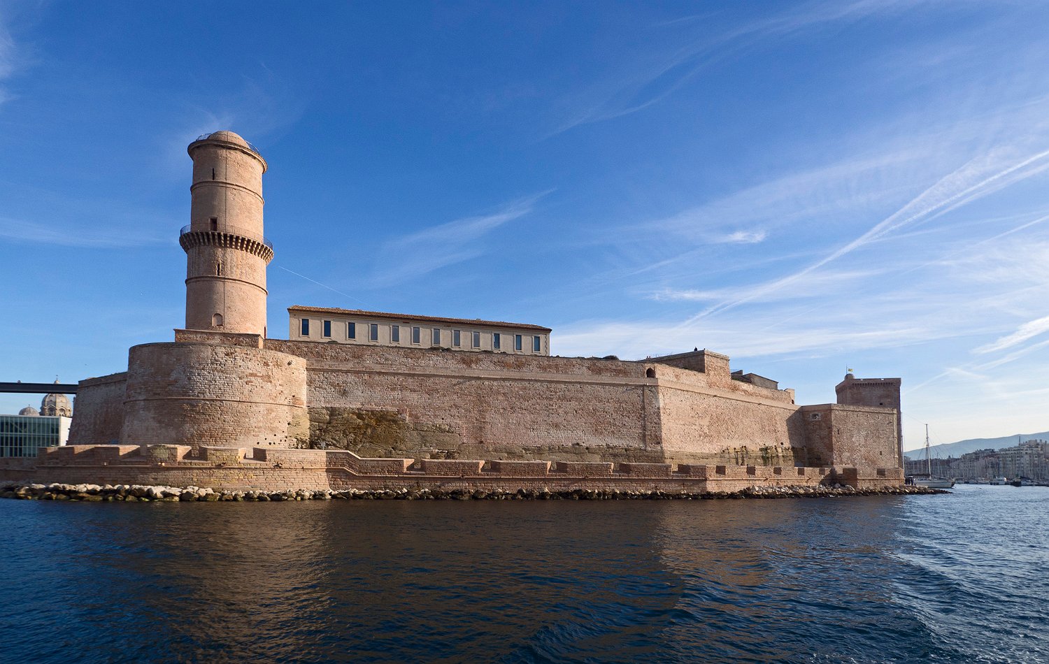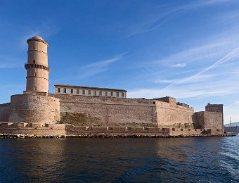Fort Saint Jean vu de la mer. Au 1er plan à gauche la tour ronde du Fanal