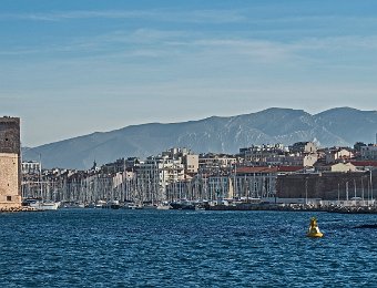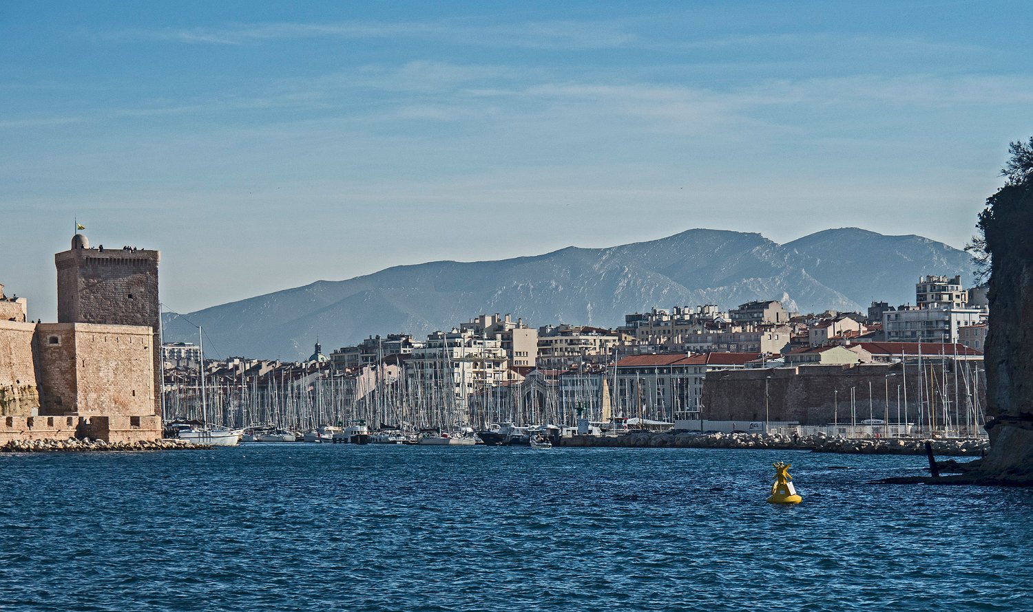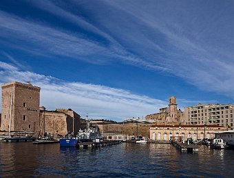 Les deux forts de défense de l'entrée du vieux port vus depuis la rade : à gauche le fort Saint Jean et à droite le fort Saint Nicolas