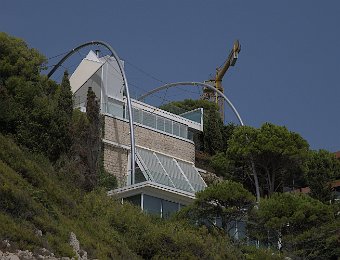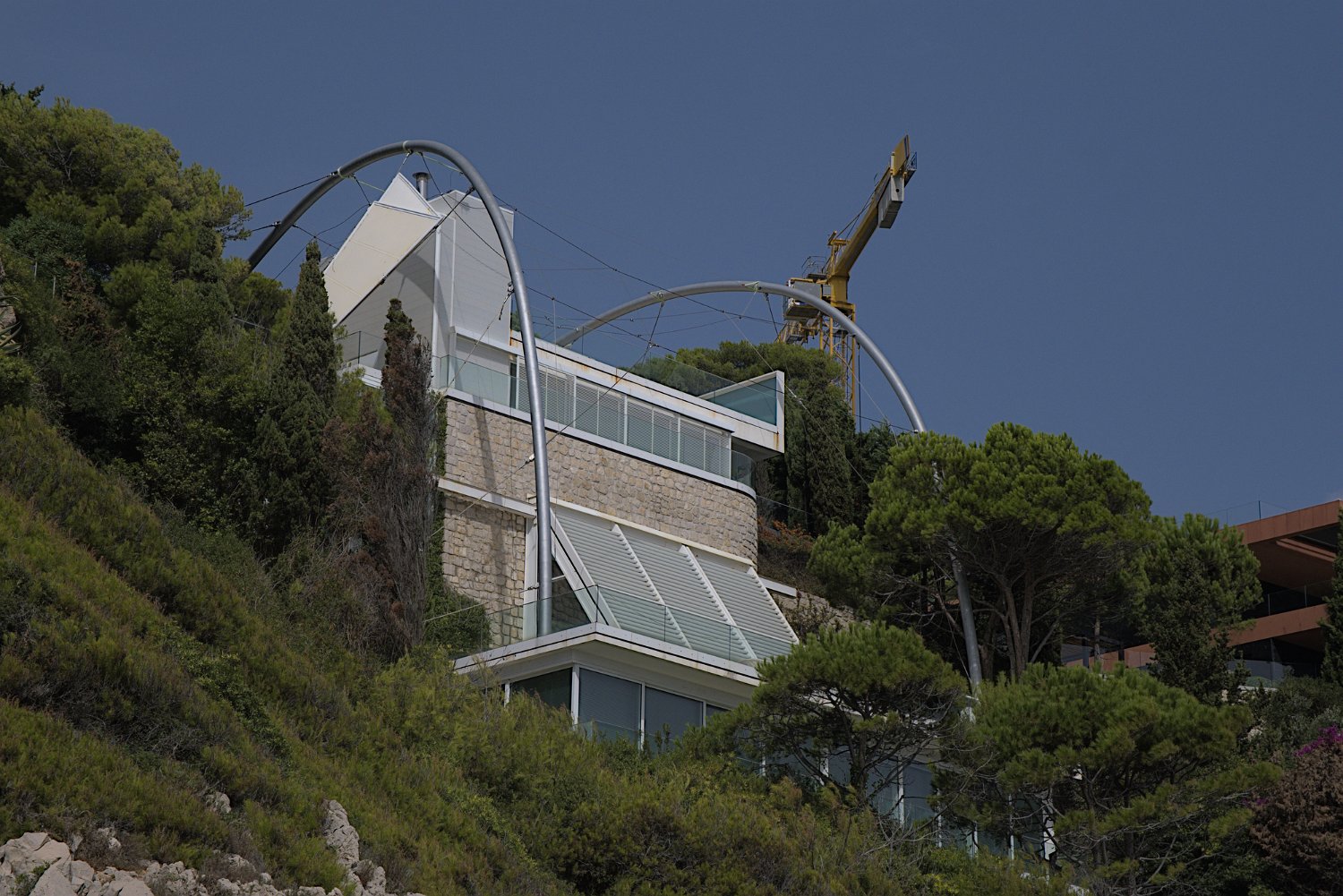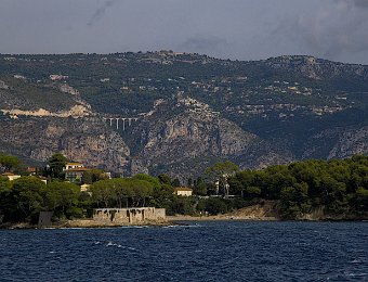 Sur la montagne, le village d'Eze et le viaduc de l'autoroute
