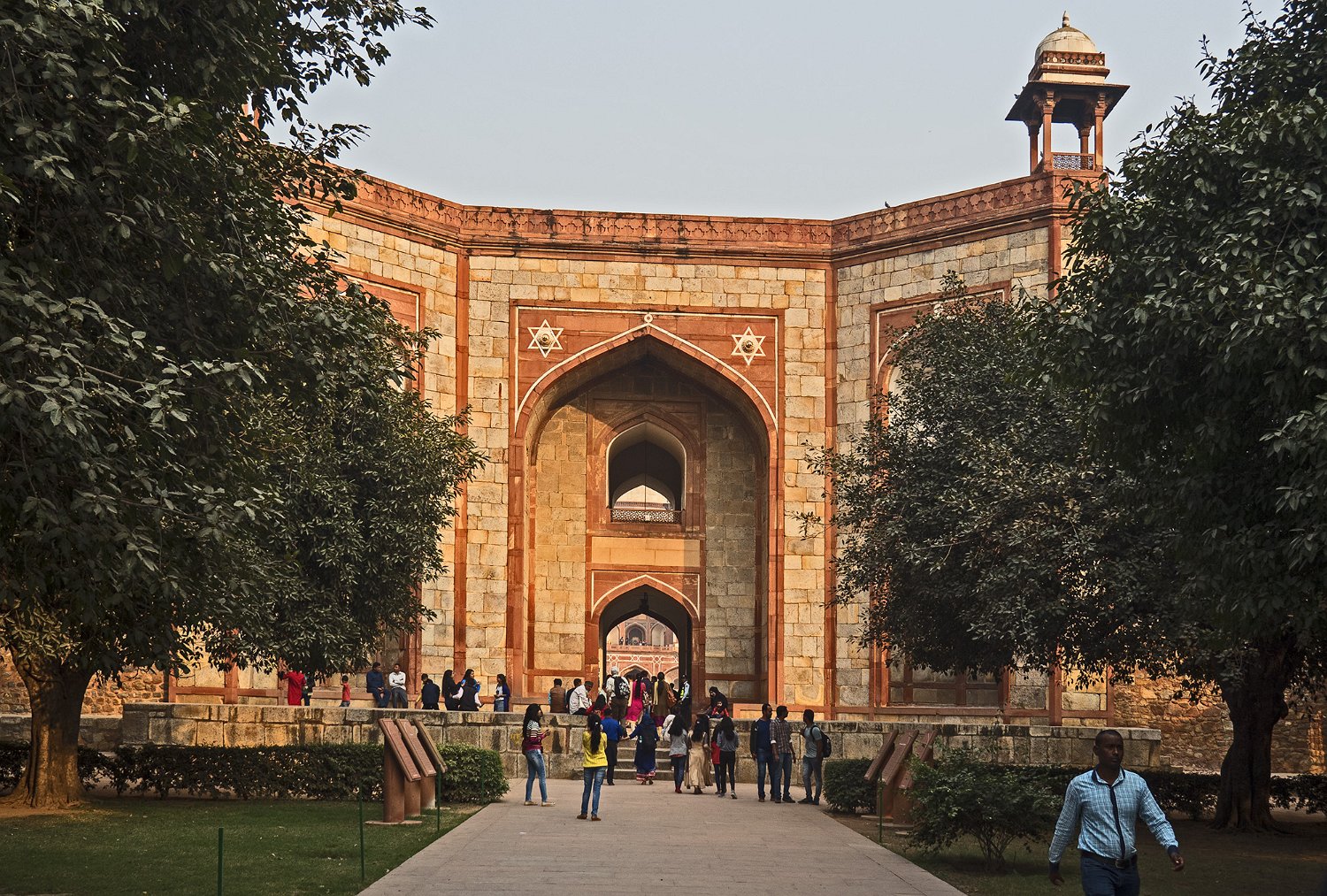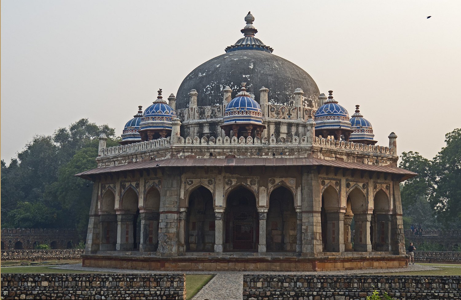 Tombe de Humayun- Mosquée D'Isa Khan Tombe de Humayun- Porte Tombe de Humayun Avenue dans New Delhi et bâtiments officiels  New Delhi est une ville nouvelle créée au début du XXe siècle par les Britanniques qui ont voulu déplacer la capitale de l'empire britannique de Calcutta  vers une position plus centrale et symbolique.