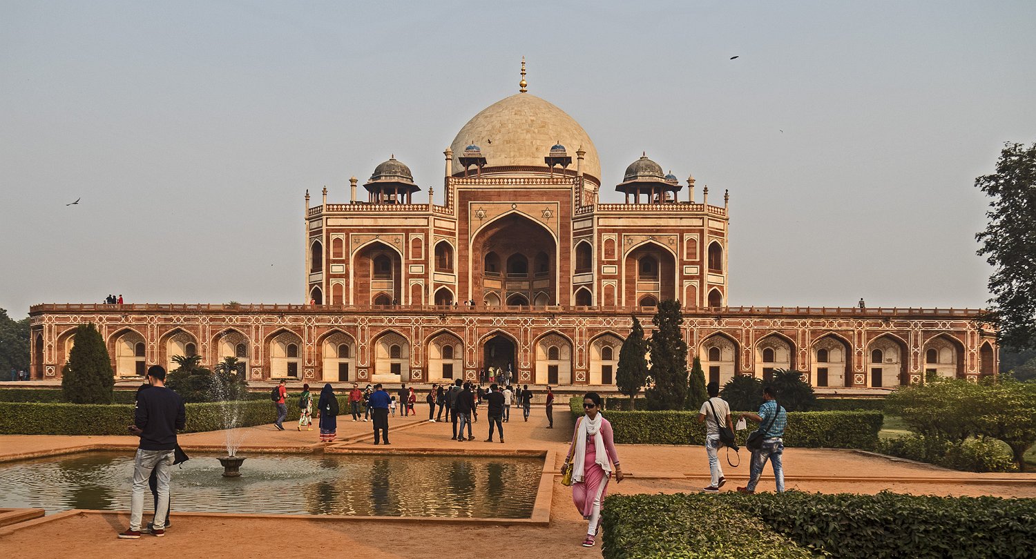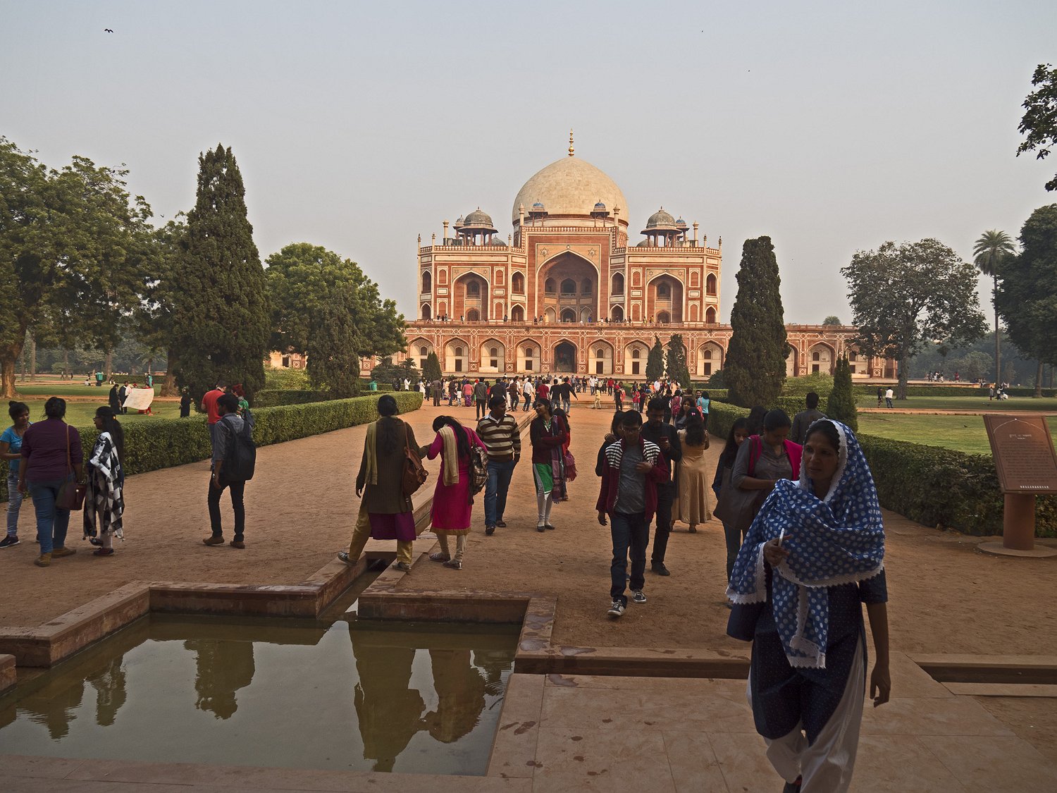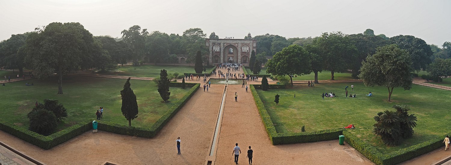 Birla Mandir (temple de Laxminarayan)-vue d'ensemble  Birla Mandir est un terme générique qui désigne différents temples hindous construits par la famille Birla à travers l'Inde. Delhi possède l'un d'entre eux,  dont la construction a commencé en 1933,et qui  est dédié à Laxminarayan (qui se réfère au dieu Vishnu) Birla Mandir- Façade principale Birla Manir- Détail des toitures Tombe de Humayun- panoramique du site  La tombe de Humayun  est un ensemble d'architecture moghole, en fait une véritable nécropole. Le site  abrite la tombe de l'empereur Humayun et celles de sa famille : ses femmes Biga Begum et Hamida Begum ainsi que de Dara Shikoh, son arrière-arrière-petit-fils.De nombreux autres empereurs moghols y sont également enterrés.