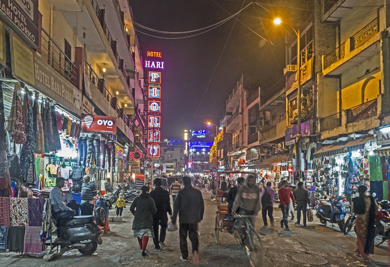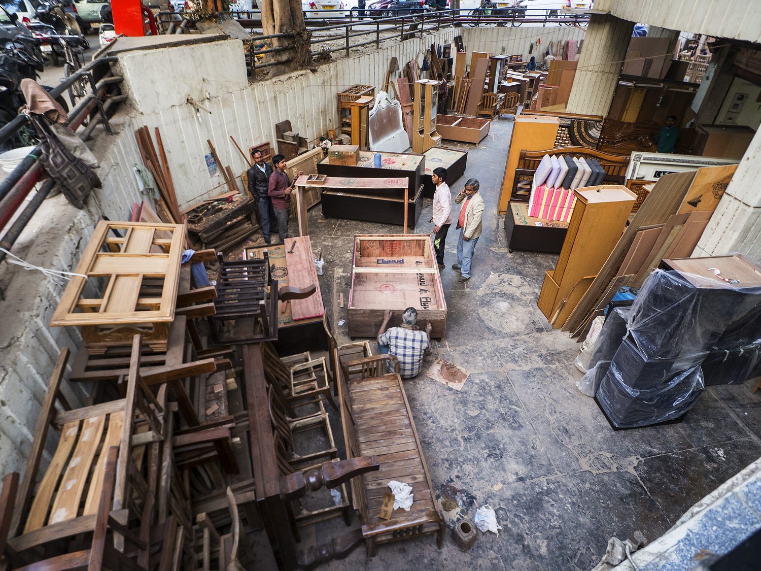 Rue de nuit dans Old Delhi Vaches dans Old Delhi  Voir aussi l'album photo sur les vaches sacrées (http://inde.vaches-sacrees.af24.fr) : vache Old Delhi- Menuiserie à ciel ouvert Gurdwara Bangla Sahib (temple Sikh)  Ce temple Sikh réalise 25000 repas par jour qui sont distribués sans aucune considération d'origine ou de caste. A l'heure des repas, les fidèles s'assoient par terre en rangées, et des volontaires leur servent dal et chapati. Ce repas commun symbolise l'unité de la communauté.