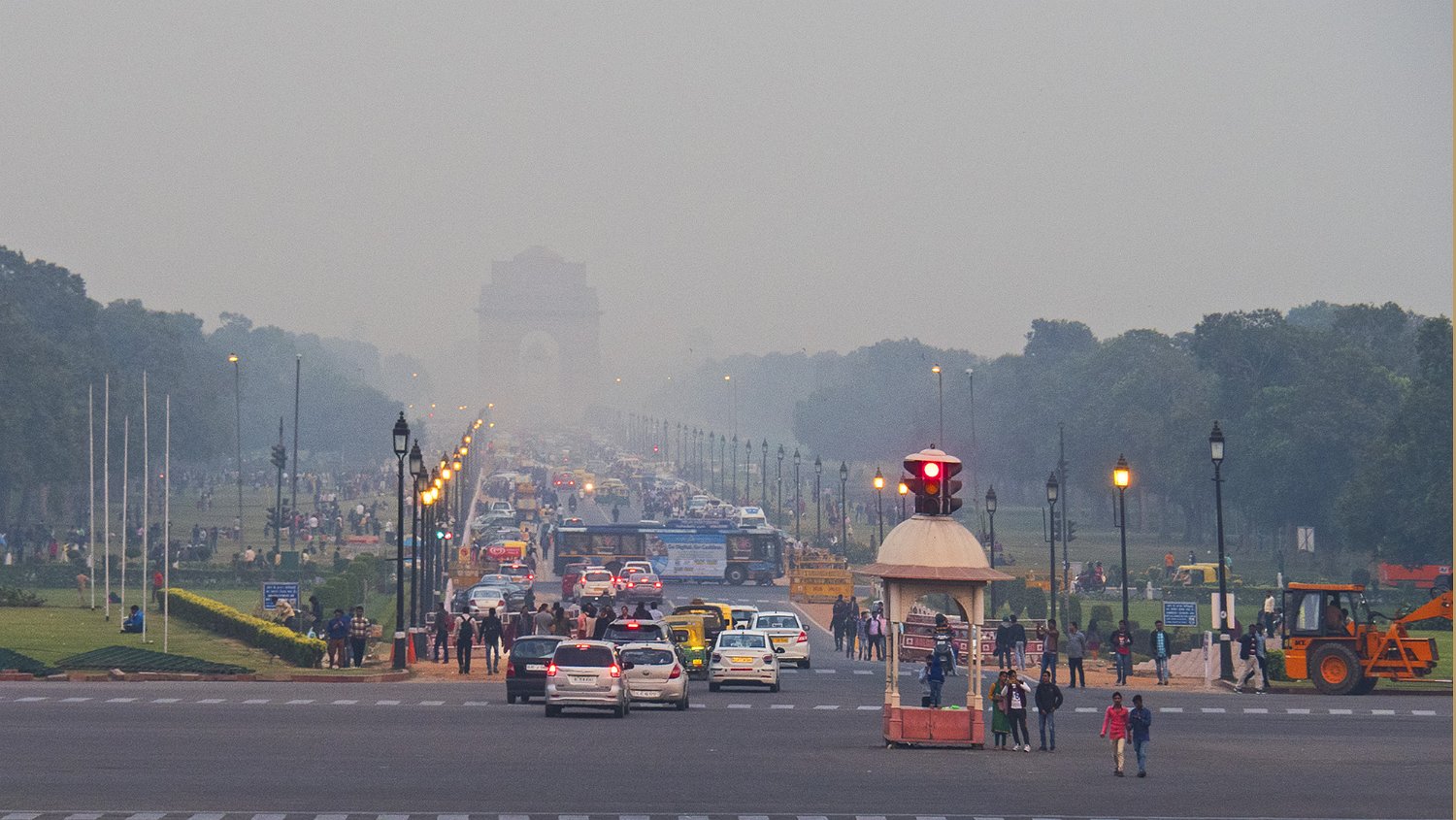 Palais du gouvernement Avenue dans New Delhi et au fond l'arc de triomphe vu à travers la pollution Parade militaire dans New Delhi  Ces parades militaires ont lieu tous les dimances après midi dans le Buddha Javanti Park de New Delhi Parade militaire dans New Delhi