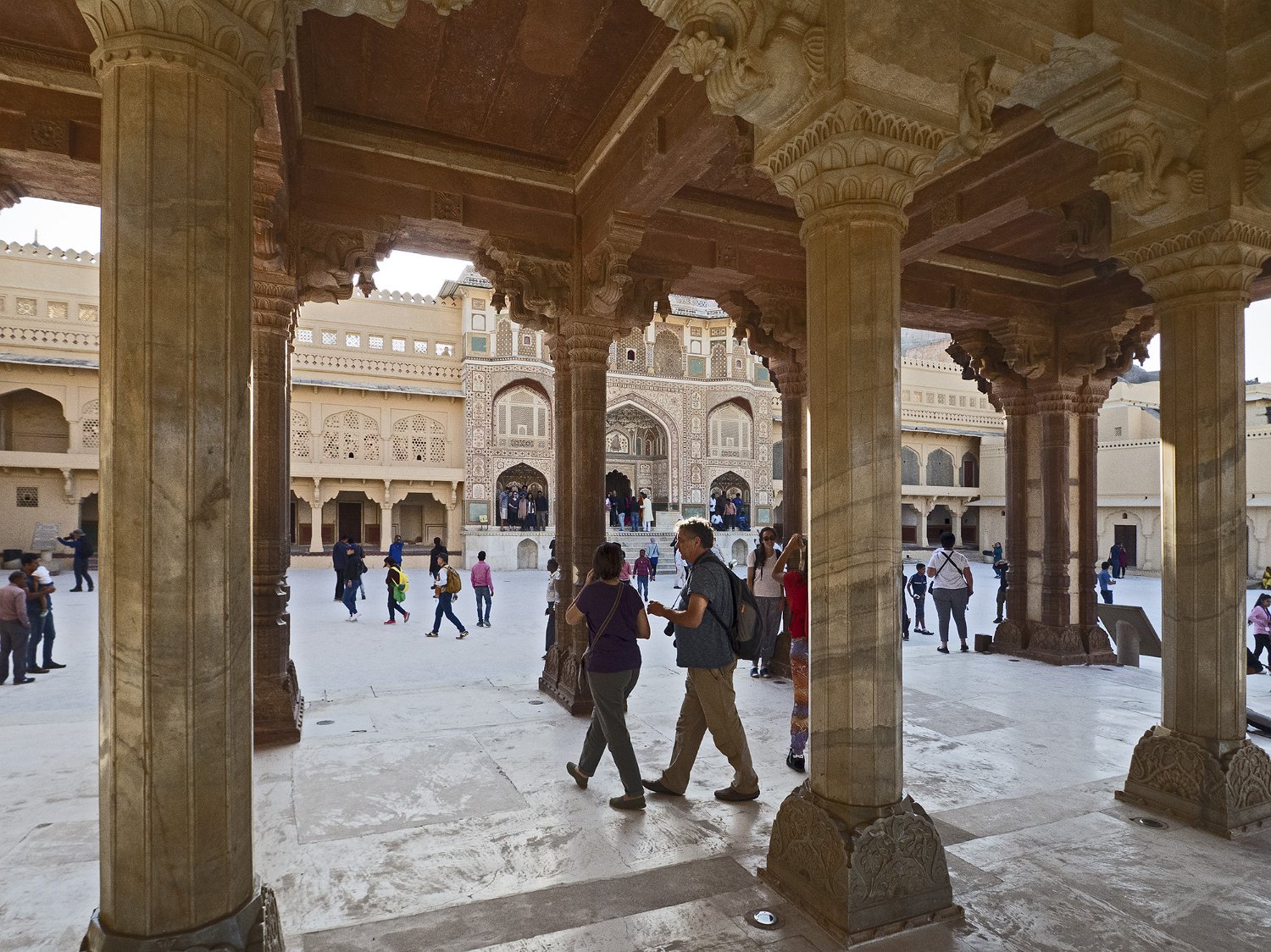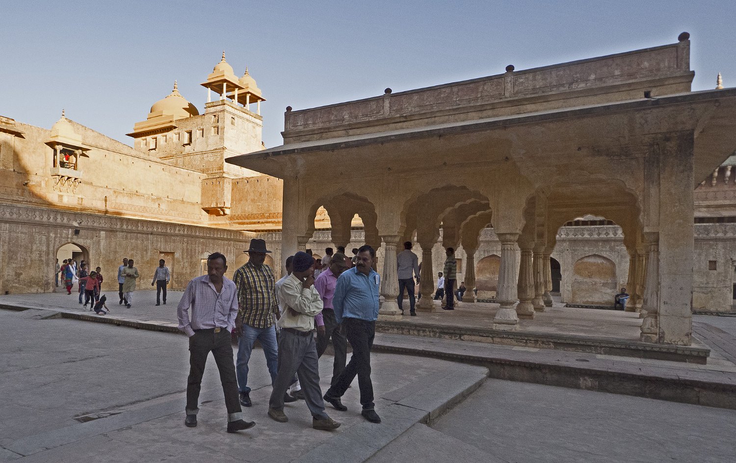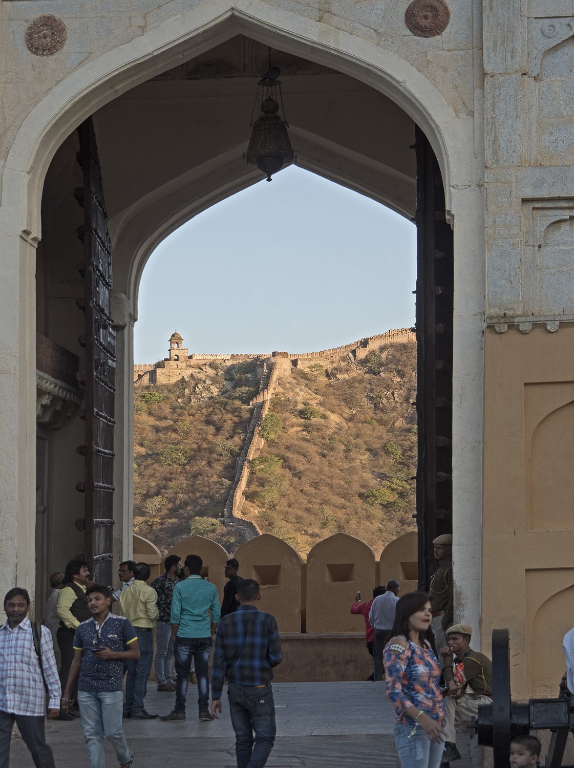 Le fort d'Amber est construit en gré rouge au XVIème siècle. Il s'étale sur quatres niveaux. L'accès se fait par la porte du soleil (Suraj Pole), à l'issue de la montée d'une longue rampe d'accès depuis la vallée. Le niveau le plus élevé était réservé aux femmes