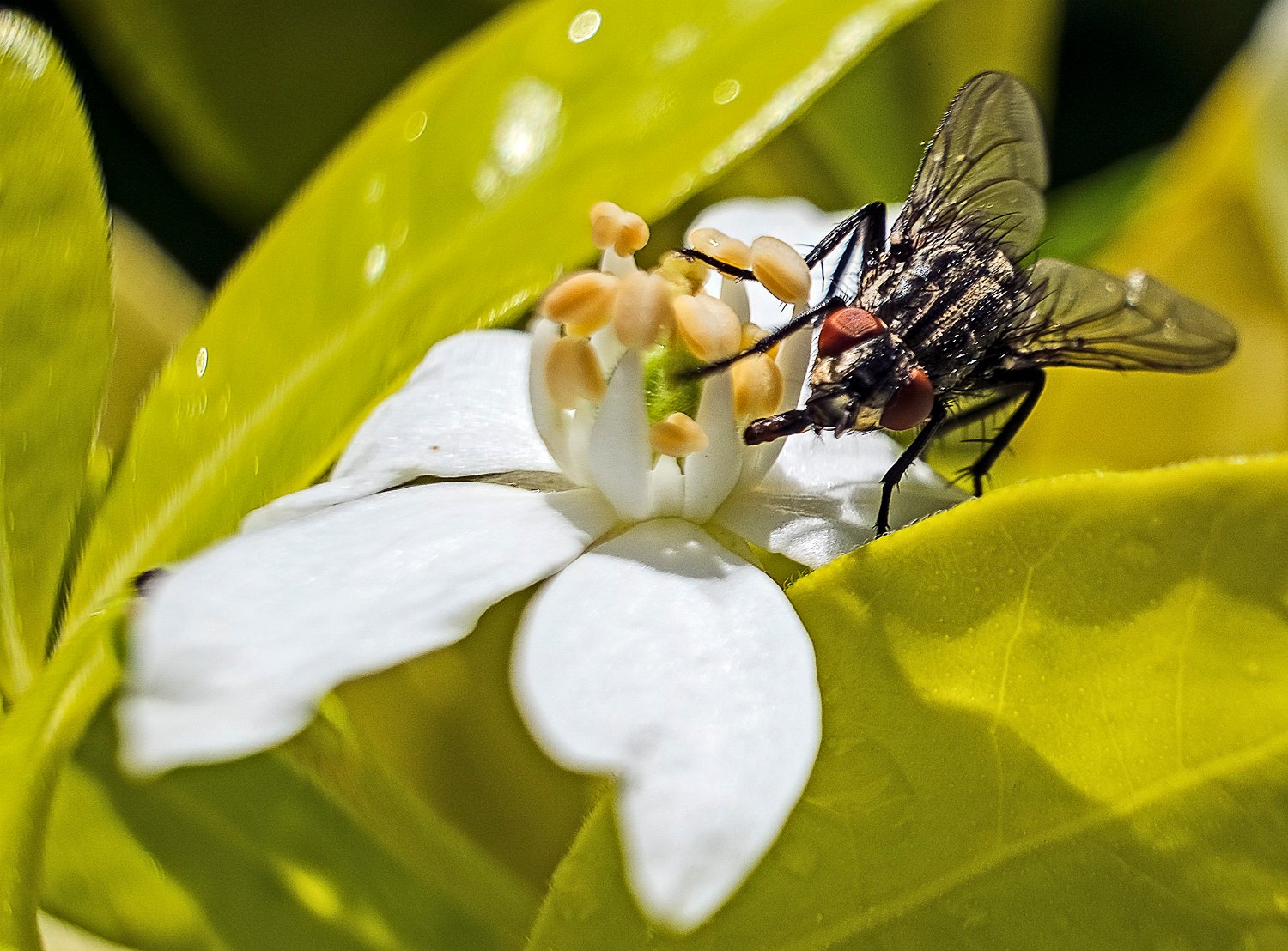 Mouche sur fleur d'oranger du Mexique  Fuji 16-80mm à 80mm + bague allonge 27mm F8-1/350-160ISO Lézard des murailles  7artisans 60mm F4-1/640-160ISO Anthophore commune mâle sur ciste  7artisans 60mm F4-1/210-160ISO Abeille sur ciste  7artisans 60mm F4-1/125-160ISO