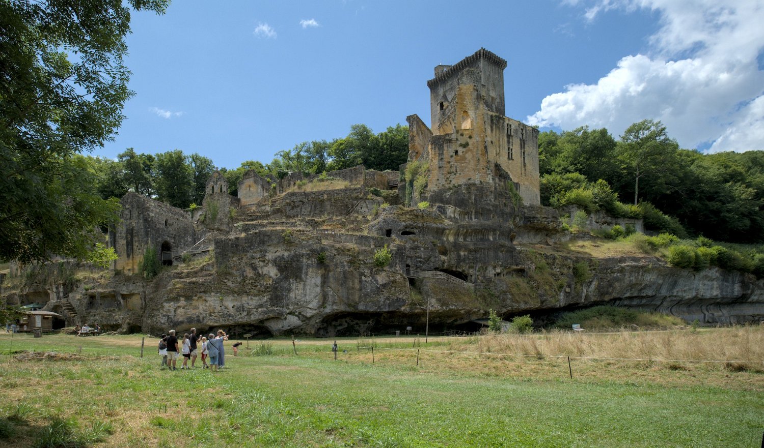Château vu du pied de la colline, falaise dans laquelle est creusé le grand cluzeau
