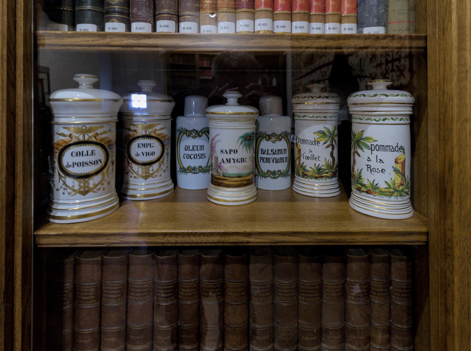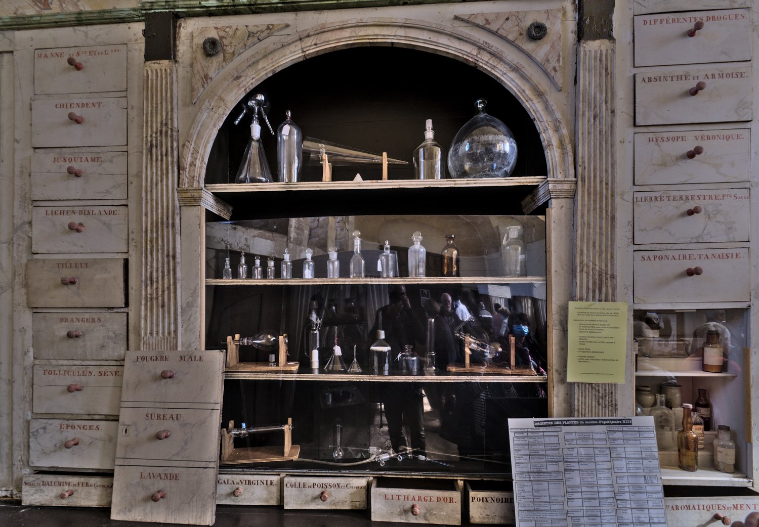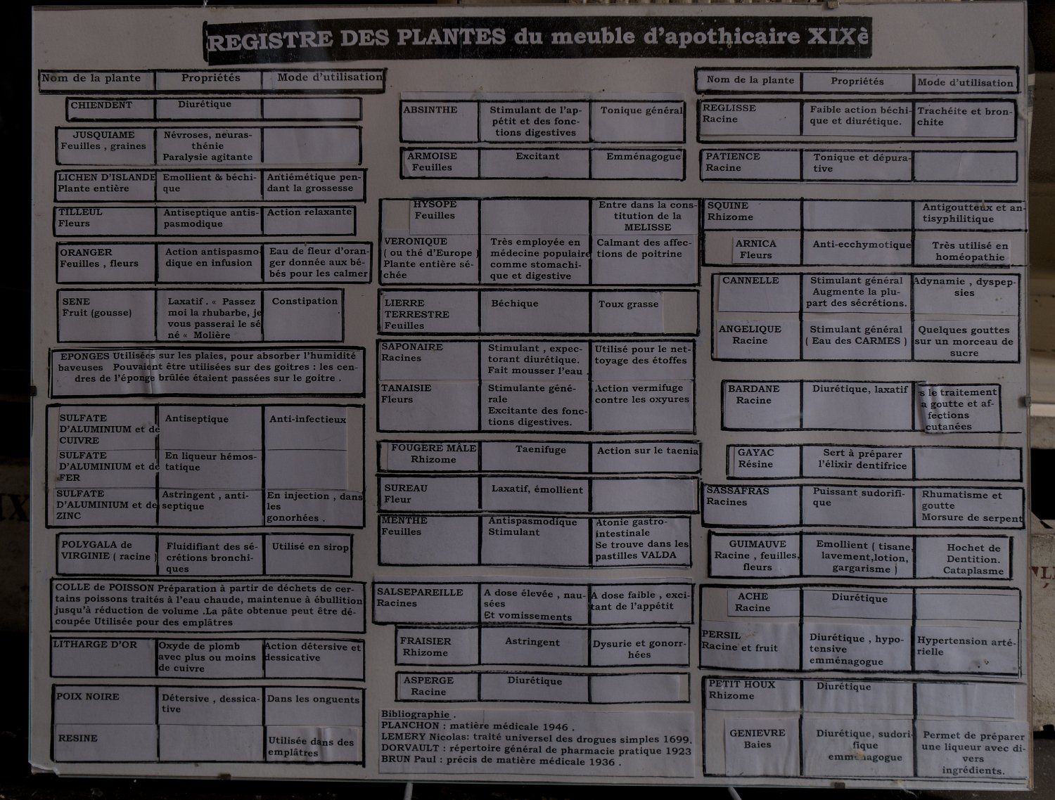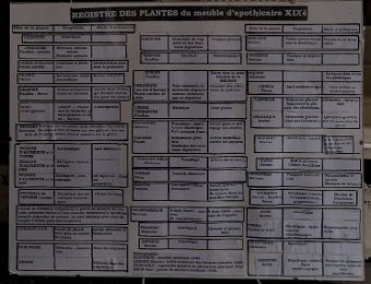 Détail des plantes hénergées dans le meuble d'apothicaire
