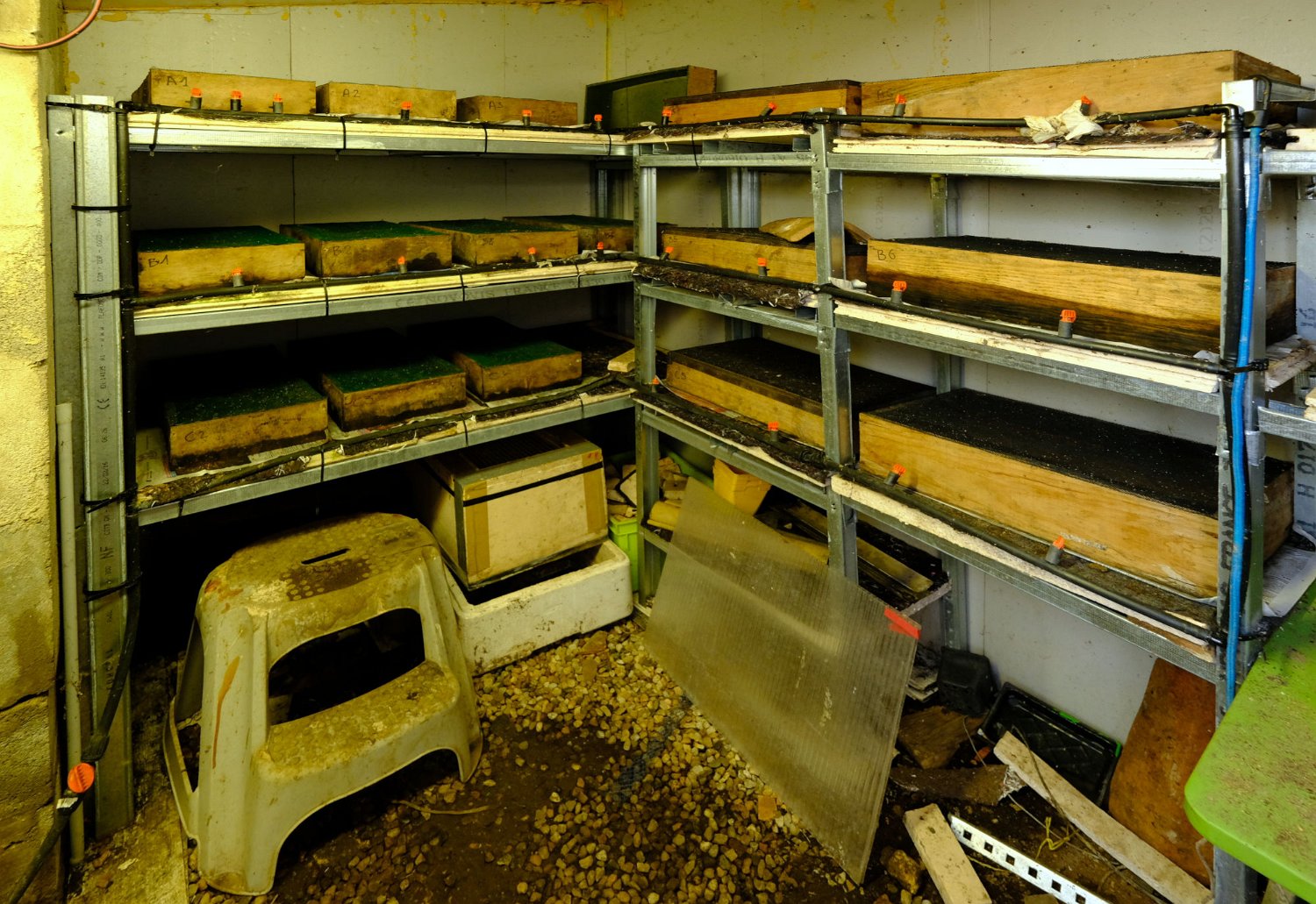 La zone de production des plants est divisée en 2, une est à 20° et l'autre à 24°. Le chauffage est obtenu par des cables chauffant de térrarium de 30 et 50w…