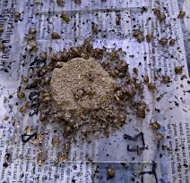 L'aliment utilisé est de l'aliment pour poule pondeuse broyé complété avec du calcaire en poudre (pour la coquille)