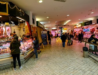 Le bâtiment abrite de nombreux commerces, dont la FNAC et un marché populaire de produits alimentaires