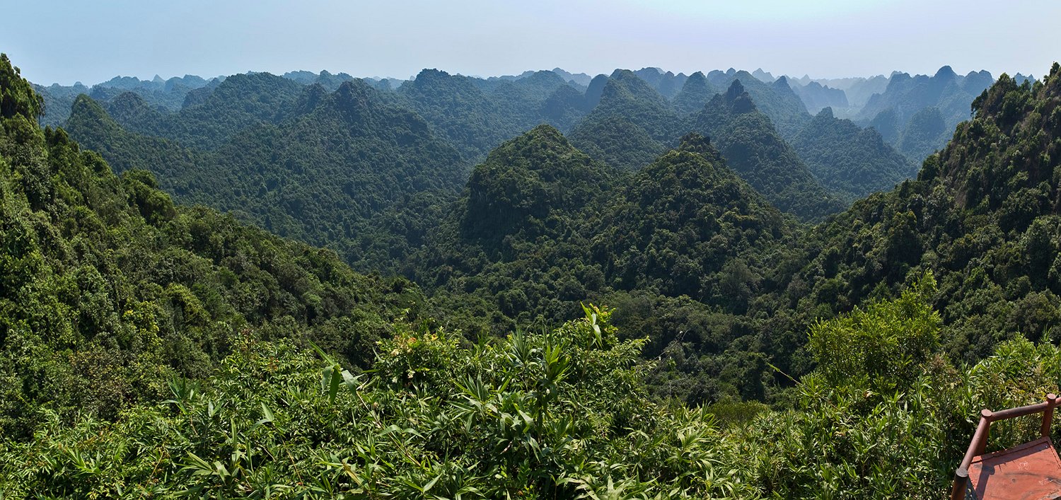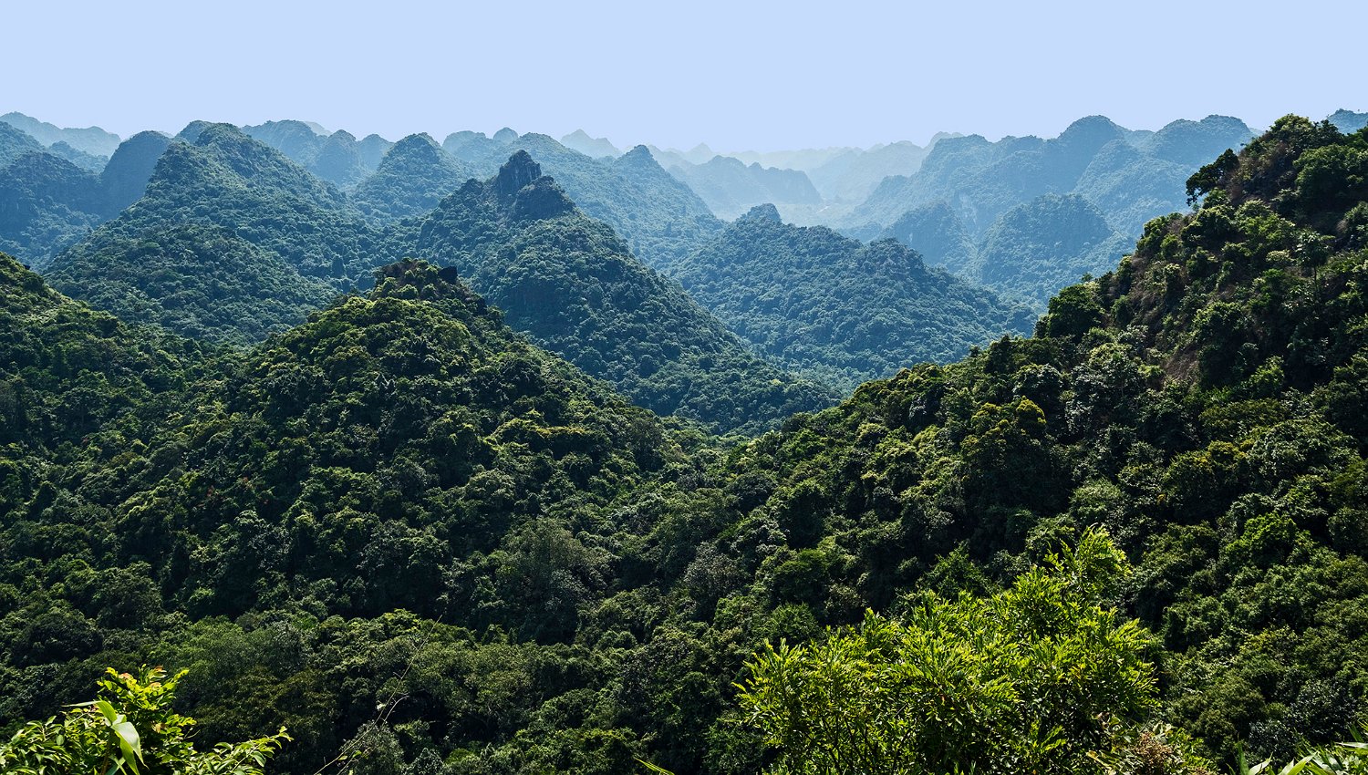Panorama sur la forêt tropicale dans le parc national de Cat Ba Forêt tropicale dans le parc national Village dans le parc national Un des seuls oiseaux photographié au Vietnam dans le parc national de Cat Ba
